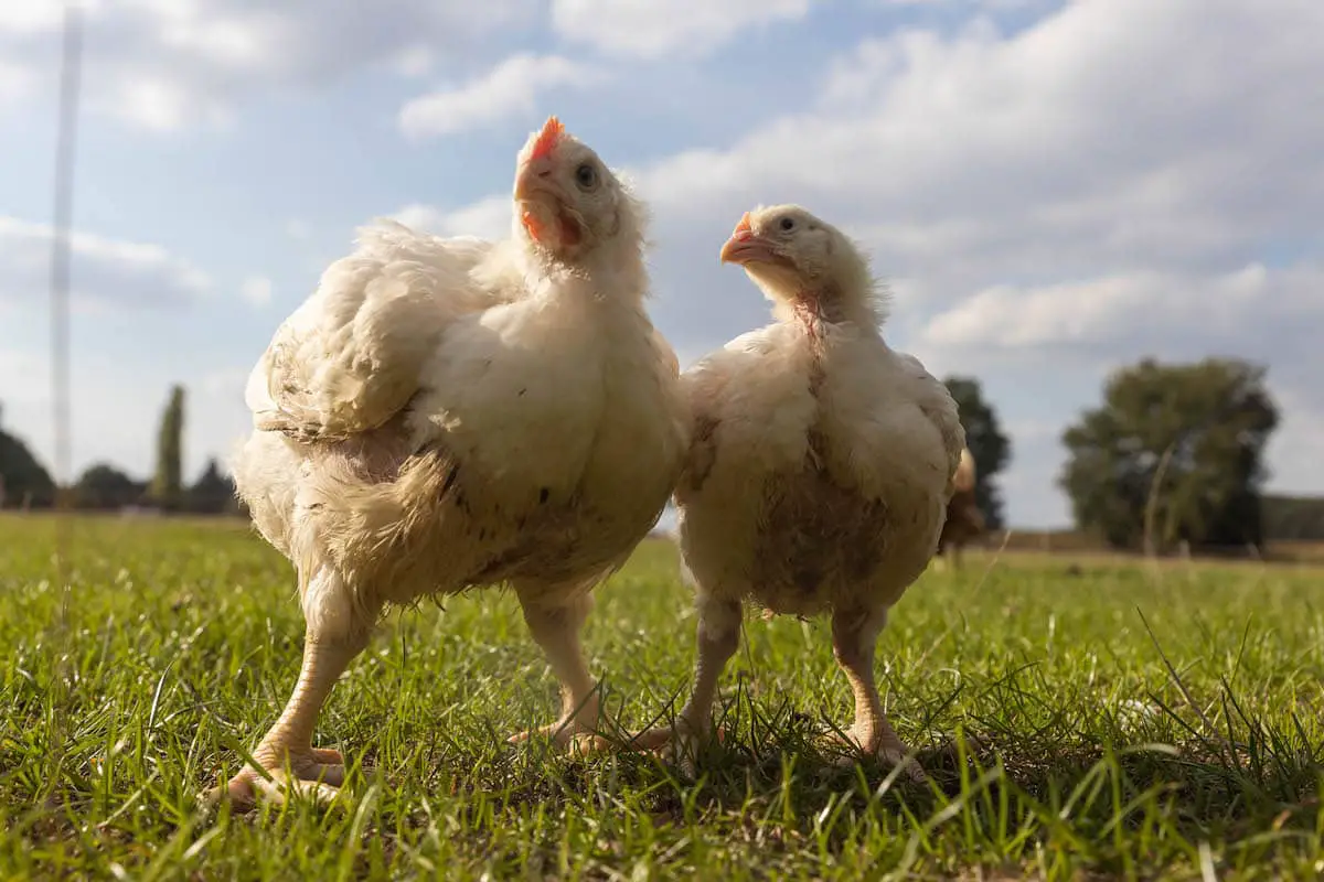 In solch einem Stall lebten auch Didi und Kendra. Zum Zeitpunkt ihrer Rettung waren sie nicht einmal einen Monat alt, doch Didi, ein junger Hahn, war bereits riesig und schwer. Er konnte sich nicht auf den Beinen halten. Der Grund: Masthühner wurden so gezüchtet, dass sie schnell viel Fleisch ansetzen, besonders an der Brust und den Schenkeln – denn diese Teile essen Menschen am liebsten. Zusätzlich wurde den Hühnern das Sättigungsgefühl weggezüchtet. Moderne Masthühner legen daher innerhalb eines Monats anderthalb bis zwei Kilogramm zu. Ihre Organe und Knochen sind damit meist überfordert, sodass die Hühner z. B. an Knochendeformationen leiden oder gar an Organversagen sterben können. Didi kam nicht mehr an das Wasser oder Futter und wäre so wahrscheinlich bald verhungert oder verdurstet.