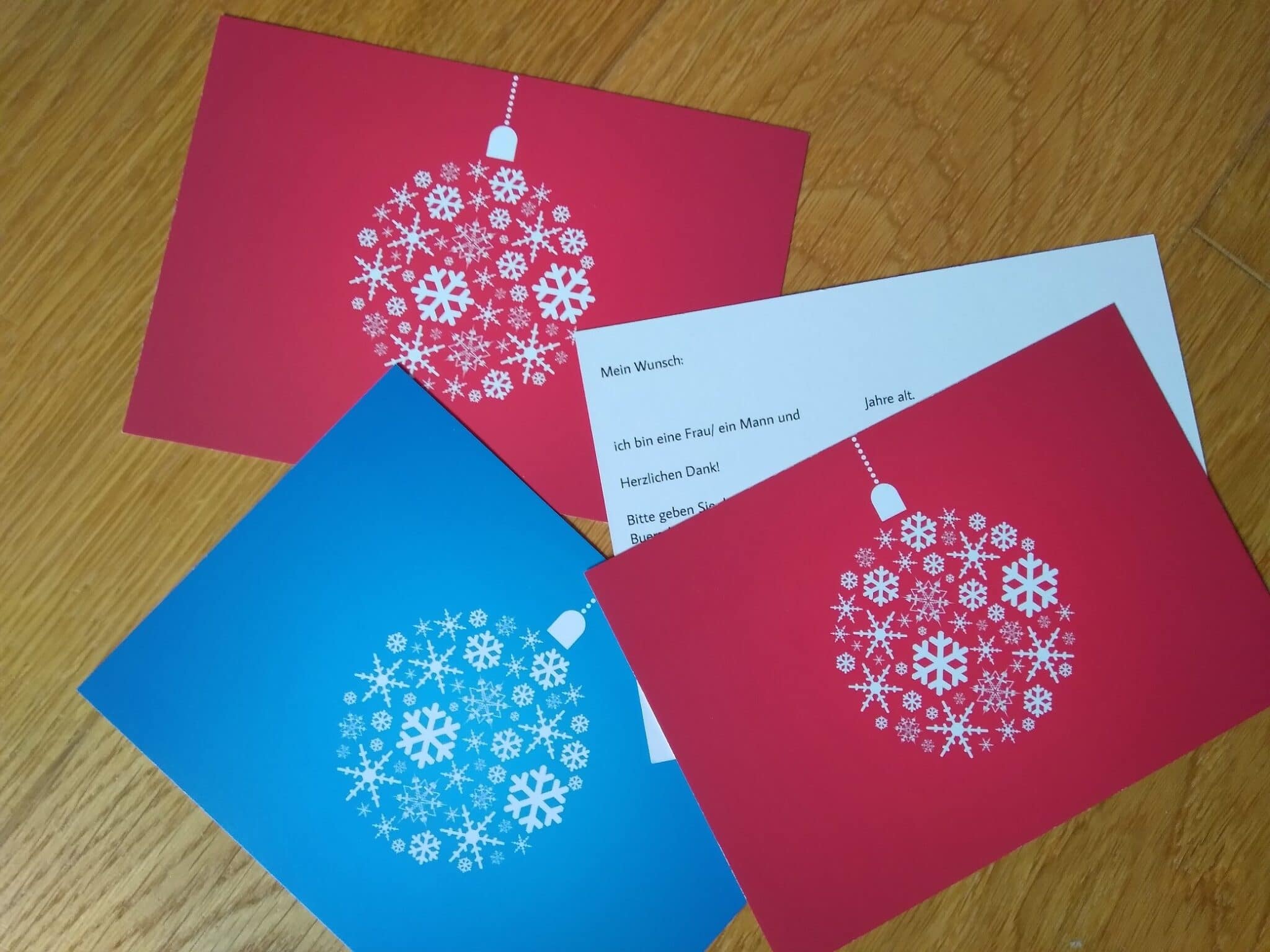 Vom 1. bis zum 3. Advent (beziehungsweise solange der Vorrat reicht) können Wunschkarten von den Bäumen gepflückt werden. Bitte informieren Sie sich hier über die Zeiten, zu denen das möglich ist. Diese sind von Gemeinde zu Gemeinde unterschiedlich.