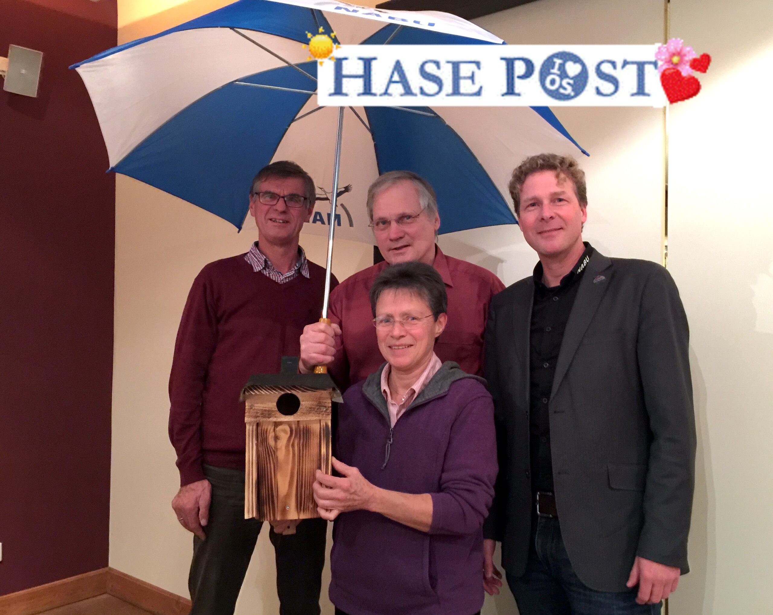 Foto: v.l.: Bernd Witthuhn, 1. Vorsitzender NABU-Kreisverband Verden, Ehepaar Liane und Heinrich Schirmer, Dr. Holger Buschmann, Landesvorsitzender NABU Niedersachsen