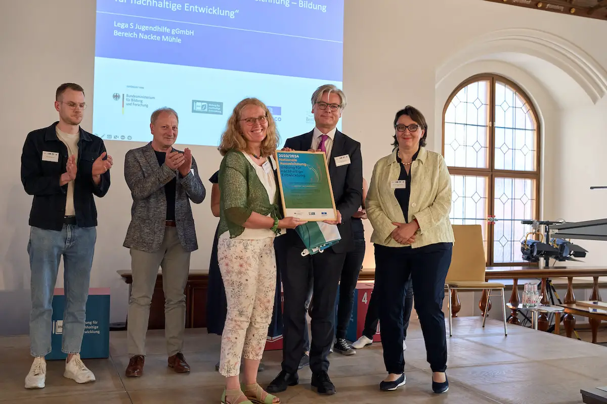 In München erhielt die Lega S Jugendhilfe Bereich Nackte Mühle eine Nationale Auszeichnung für ihr nachhaltiges Engagement verliehen. Lisa Beerhues, Bereichsleitung der Nackten Mühle, nahm im Alten Rathaus München die Urkunde vom Generalsekretär der Deutschen UNESCO-Kommission Dr. Roman Luckschneider in Empfang.