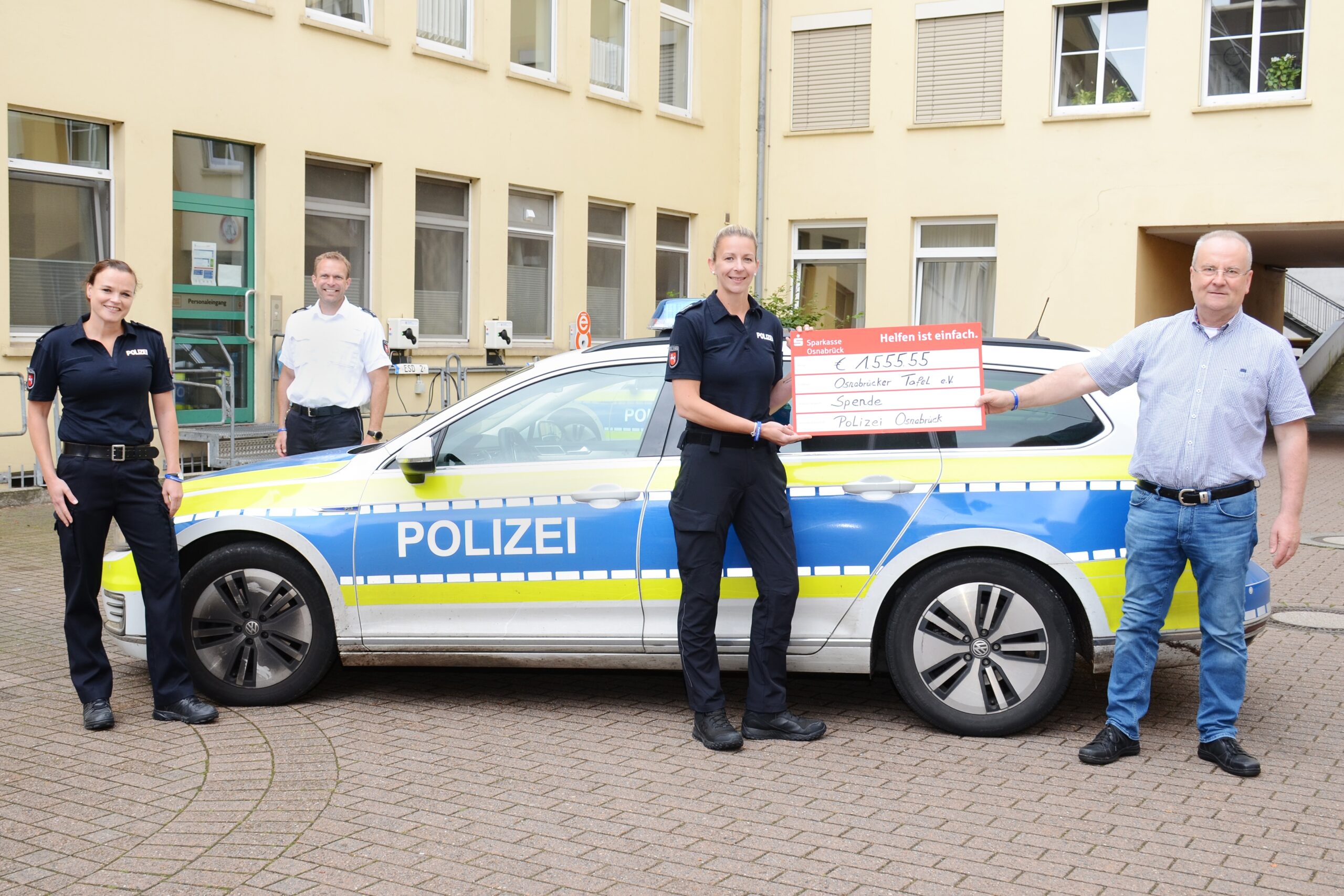 Insgesamt ist mit Unterstützung der Mitarbeiter eine Spendensumme in Höhe von 1555,55 Euro zusammengekommen, die jetzt der Osnabrücker Tafel zugutekommt. Die gemeinnützige Organisation, mit Sitz in Osnabrück und mehreren Außenstellen im Landkreis, steht durch die Corona-Krise vor großen Herausforderungen und ist auf finanzielle Unterstützung angewiesen. Durch die Initiatoren erfolgte am Montag, den 6. Juli 2020, die symbolische Scheckübergabe an Hermann Große-Marke von der Osnabrücker Tafel. Er freute sich über die Hilfsbereitschaft und bedankte sich. Bei der Übergabe erklärte er, dass die Tafel pro Woche rund 3.500 Bedürftige versorgt, pro Jahr 500.000 Euro benötigt und sich die Summe überwiegend aus Spendengeldern zusammensetzt. Die Spende der Osnabrücker Polizei wird nun in die Logistik einfließen.