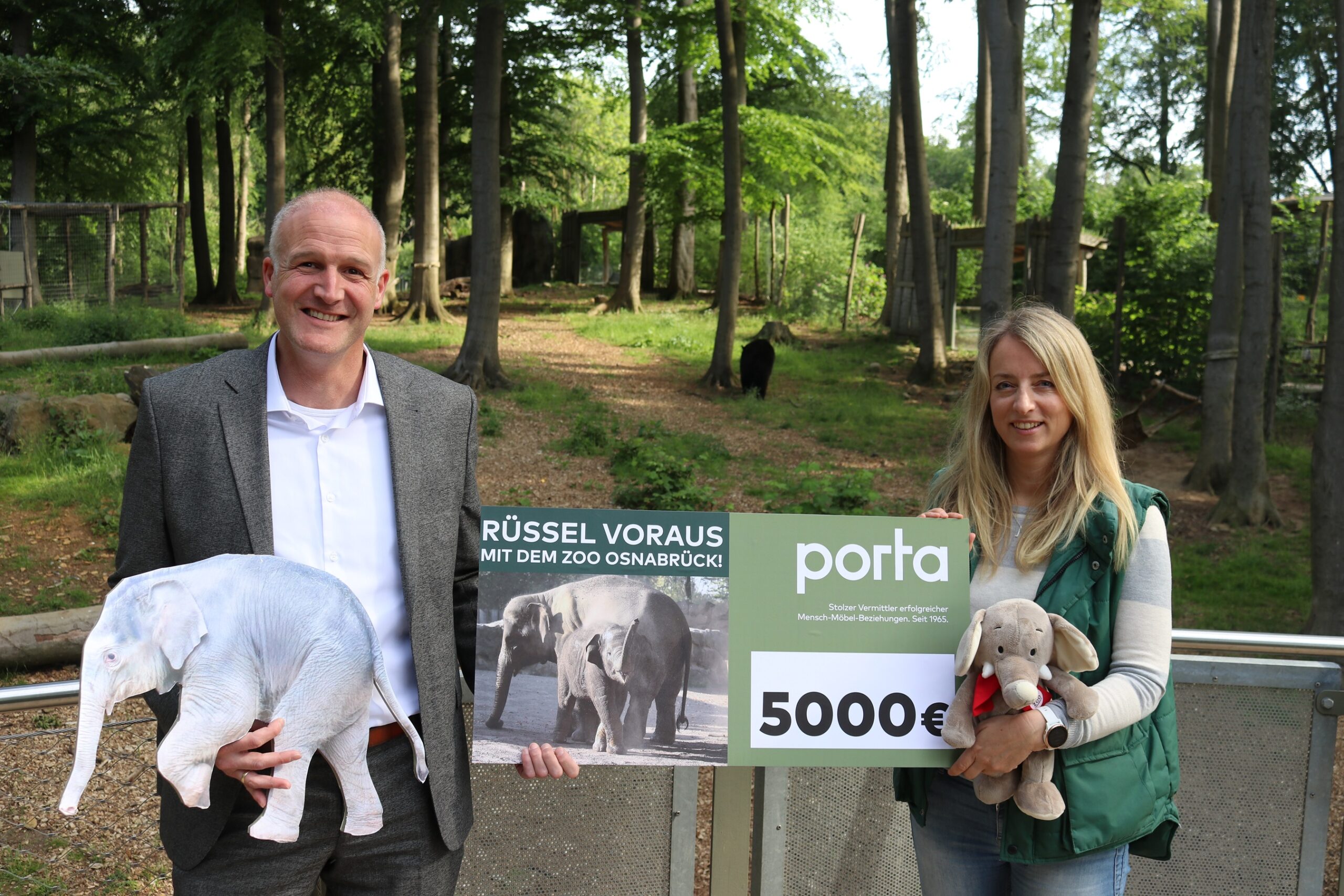 Ende April hatte das Möbelhaus Porta in Wallenhorst den bereits zweiten Aktionstag im Zeichen der Elefanten des Zoo Osnabrück. Kunden konnten dank großer Rabatte kräftig sparen und gleichzeitig die Elefanten im Zoo Osnabrück unterstützen. Denn fünf Prozent vom Tagesumsatz gingen als Spende an die Aktion „Rüssel voraus!“ für die neue Elefantenanlage.