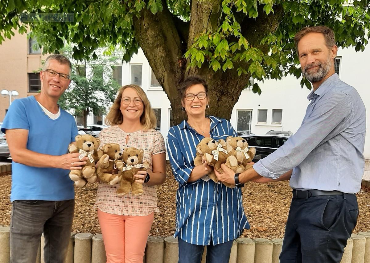 Der Präventionsverein Osnabrück (prävOS) unterstützt finanziell Präventionsprojekte in der Stadt Osnabrück. Ganz neu ist der Trauma-Bär, der die Rolle eines tröstenden Freundes übernehmen soll. Die Geschäftsführung um Oliver Voges und Martin Schmitz überreichte jeweils 50 Bären an den Kinderschutzbund und den Sozialdienst katholischer Frauen (SKF).
