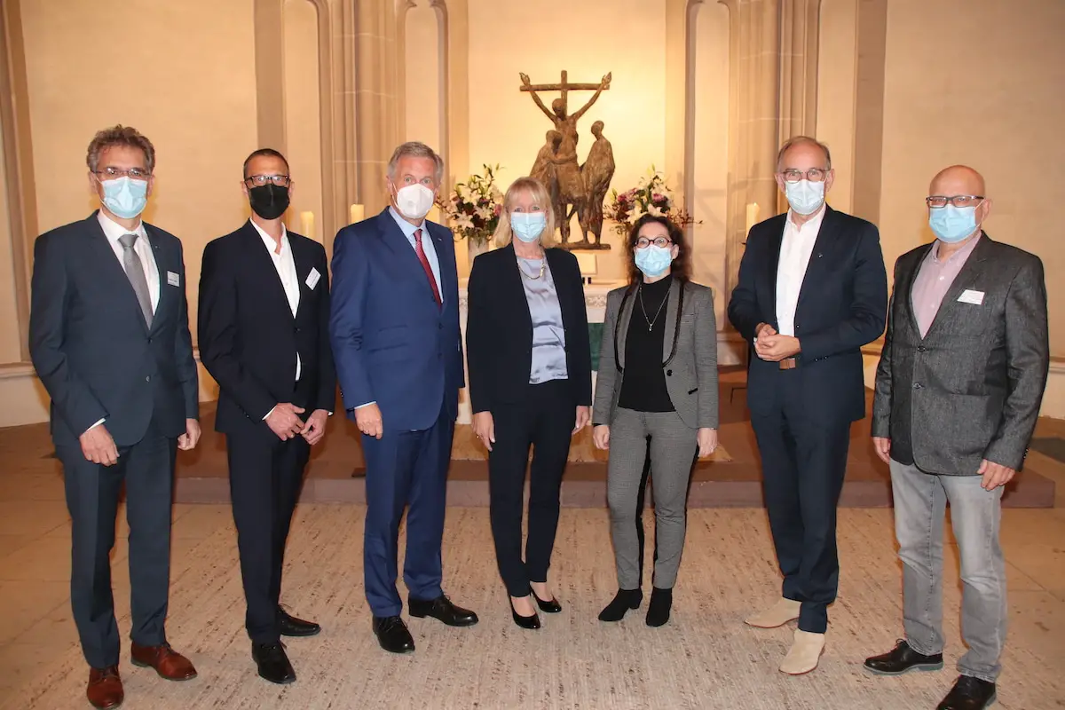 Gestalteten die Orgel-Soirée in St. Katharinen: (von links) Regionalbischof Friedrich Selter, Kirchenvorsteher Jan David Dreyer, Bundespräsident a.D. Christian Wulff, Pastorin Andrea Kruckemeyer, Prof. Dr. Siegrid Westphal, Landesbischof Ralf Meister und Wilfried Buch (Förderverein). Foto: Kirchenkreis Osnabrück/ Maren Bergmann