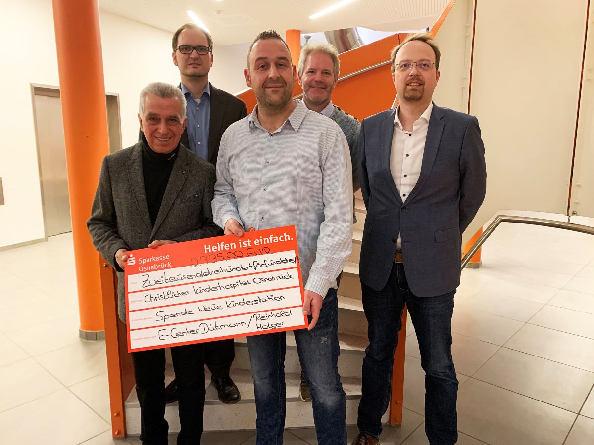 Die Würstchen hatte Guido Gartmann, Geschäftsführer des Supermarkts Dütmann, zur Verfügung gestellt. Insgesamt kam eine Summe von 2.335 Euro zusammen, die Holger und Reinhold Lammert sowie Guido Gartmann an Michael Richter und Tino Rauland vom Christlichen Kinderhospital Osnabrück (CKO) übergaben. Sie bedankten sich für die Spende und kündigten an, dass sie für die neue Psychosomatikstation verwendet werden solle.