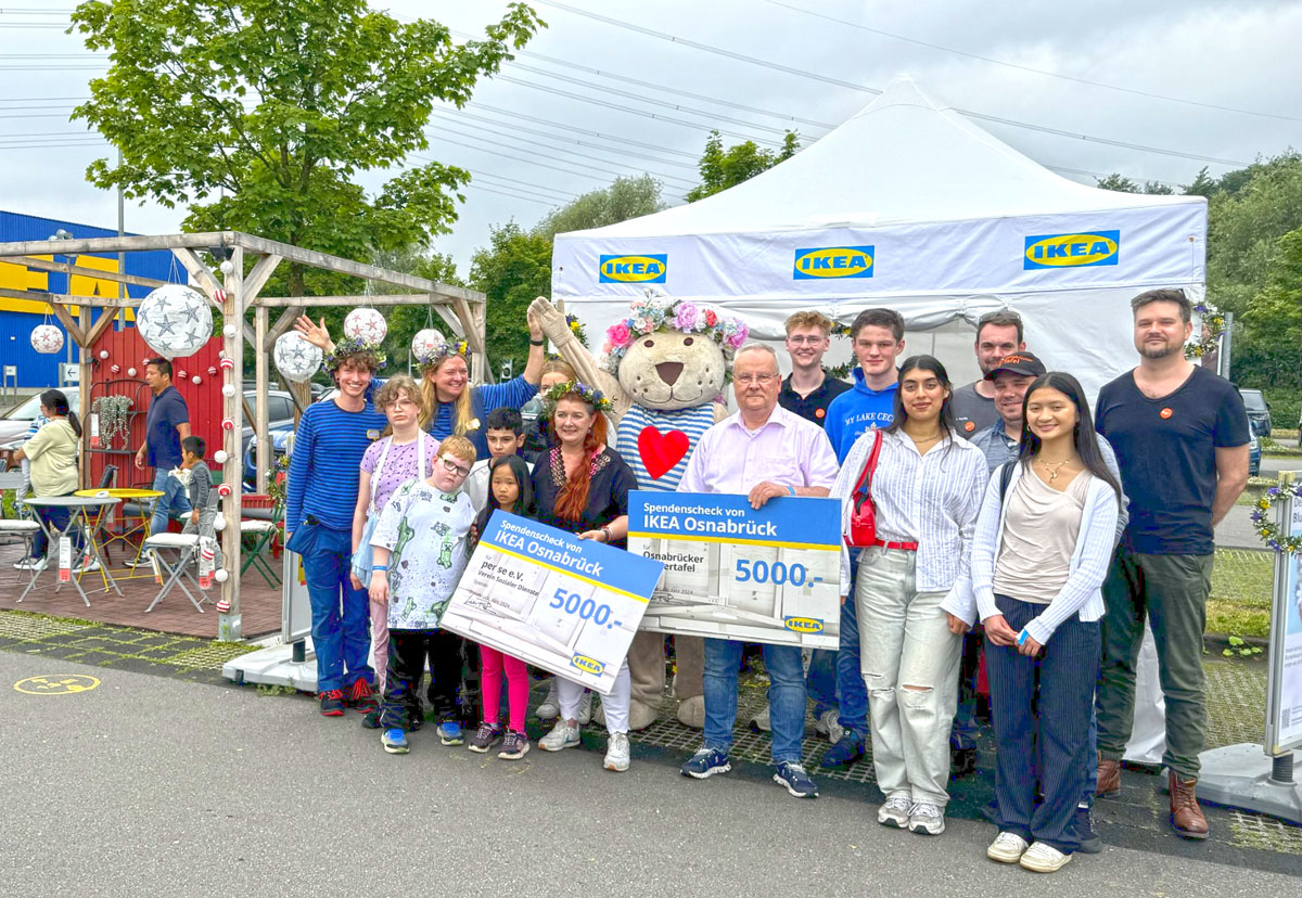 Jährlich feiert IKEA Osnabrück das typisch schwedische Midsommarfest und nutzt diese Gelegenheit, um Spendenpartner aus der Region einzuladen. In diesem Jahr wurden die Osnabrücker Kindertafel und per se e.V. als Partner ausgewählt, die sich beide für benachteiligte Kinder in der Region einsetzen. Die Osnabrücker Kindertafel versorgt bedürftige Kinder mit Mahlzeiten, während per se e.V. vielfältige Projekte und Aktivitäten zur Förderung und Unterstützung von Kindern und Jugendlichen organisiert.