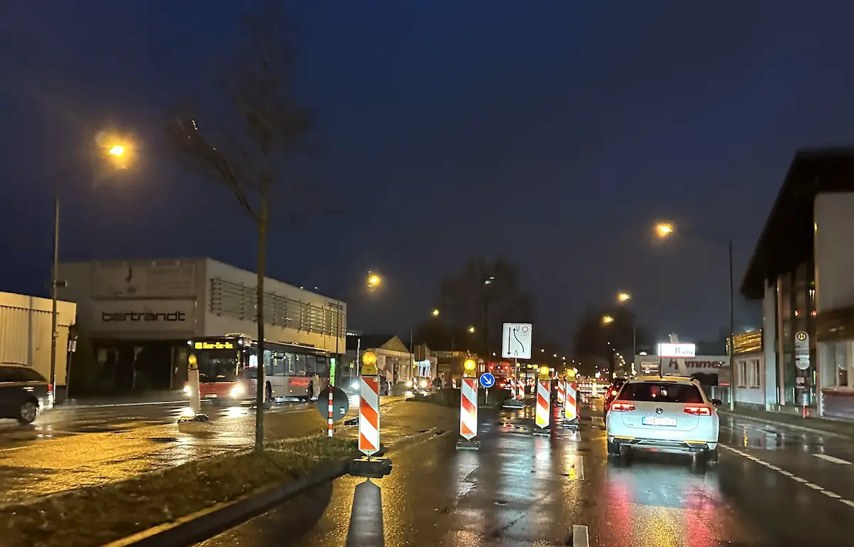 Die Bauarbeiten entlang der Hannoverschen Straße kommen weiter voran. Nun wandert das Baufeld in stadtauswärtiger Richtung bis hinter den Kreuzungsbereich mit dem Großen Fledderweg.