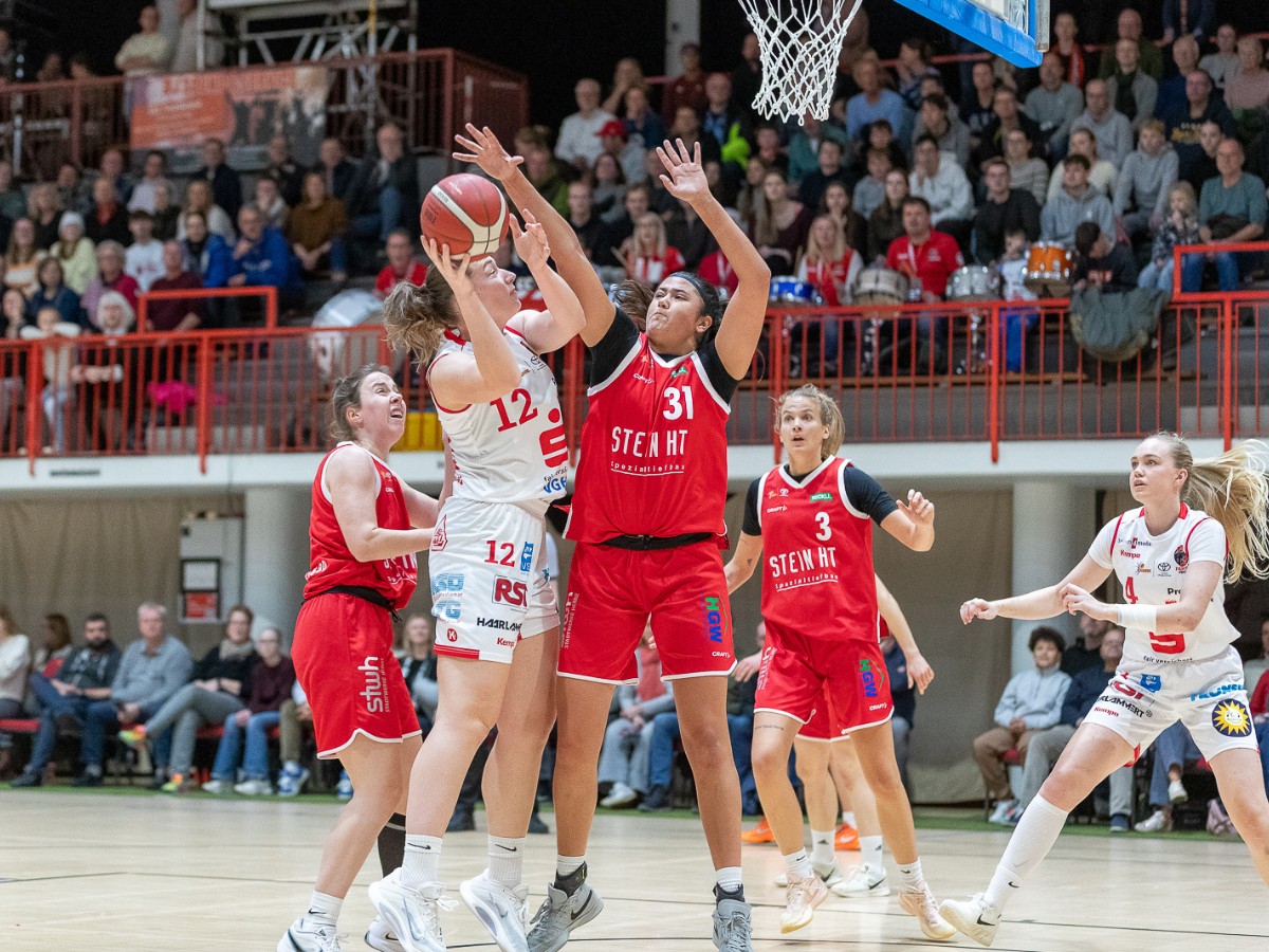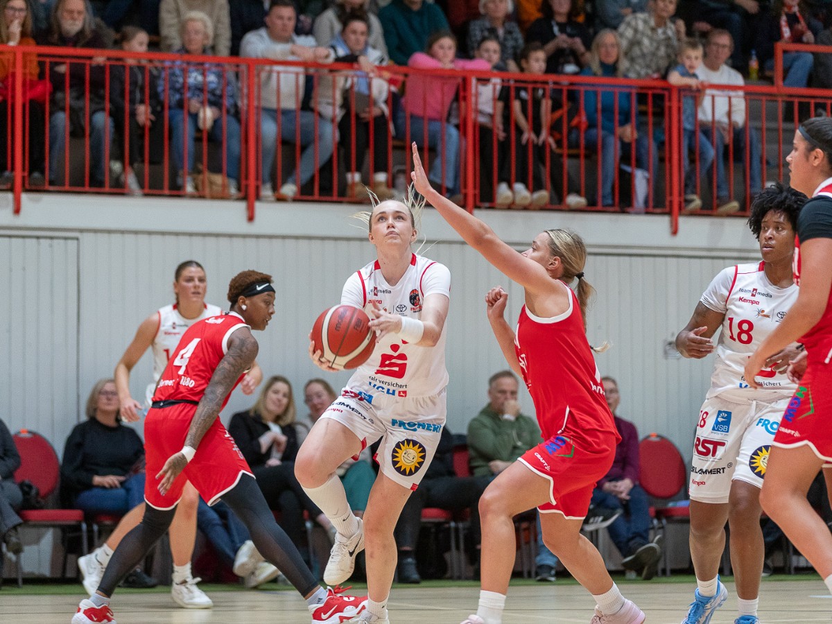 Doch plötzlich sorgt ein Sturz von Oceane Montpierre für Aufregung. Sie kracht in die Bande, die daraufhin kippt und später repariert werden muss. Nach einer kurzen Phase der Verwirrung geht es weiter – und die Panthers drehen angefeuert vom Publikum richtig auf. Mit einem 59:57 geht Osnabrück erstmals etwas mutiger in Führung.