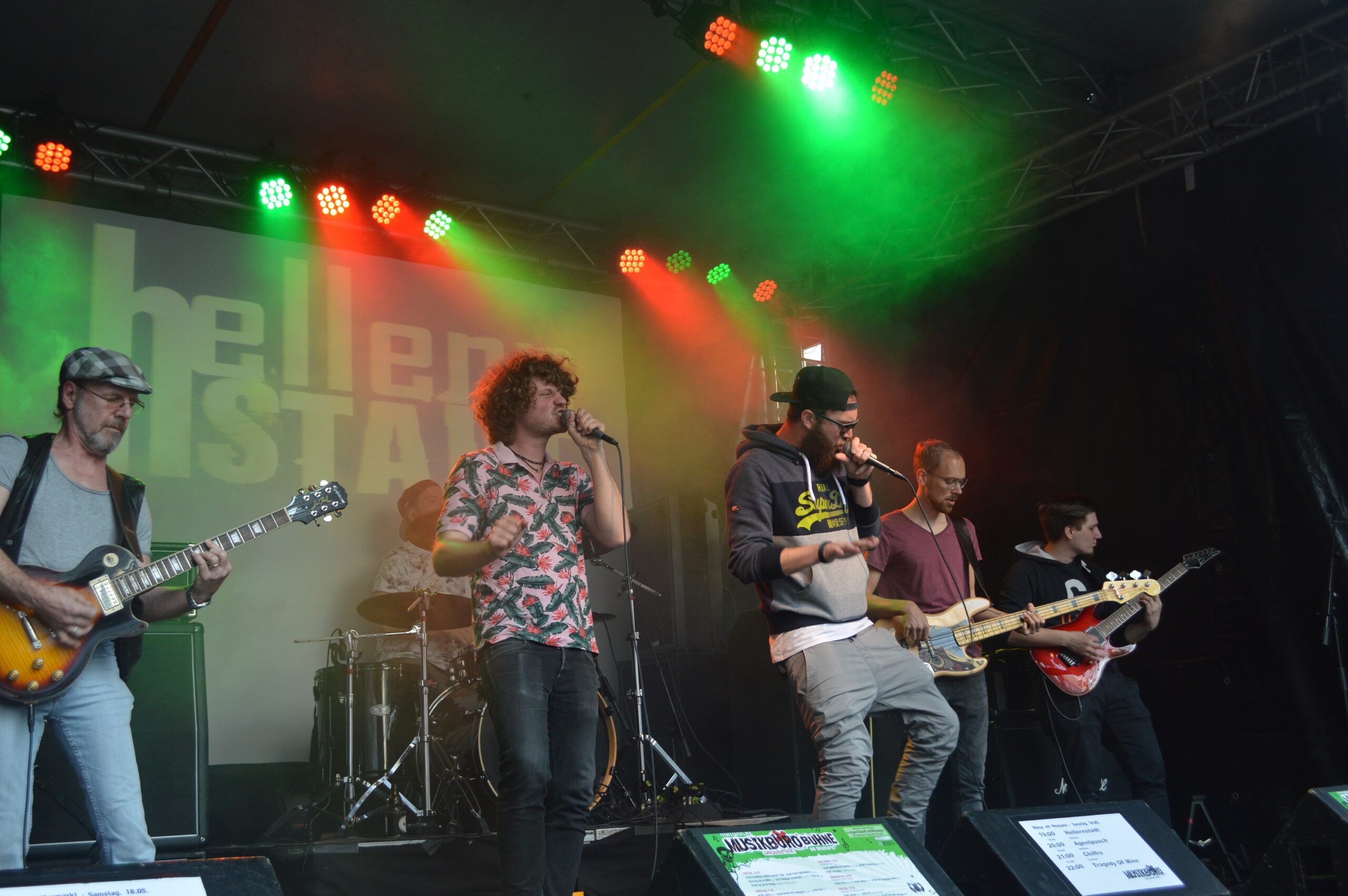 Auf der Maiwoche aufzutreten ist für die Band etwas ganz besonderes. „Es ist aber natürlich auch schon ein gewisser Druck. Schließlich muss man die Leute anheizen“, sagt Chico. Was das betrifft muss sich die Band aber wohl keine Sorgen machen. Mit ihrem lockeren Crossover-Sound sorgen sie für gute Stimmung und zu Songs wie „Hellernstadt (Championsleague)“ jubelt das Publikum begeistert mit. Ohne Zugabe werden die Herren natürlich auch nicht von der Bühne gelassen. „Es hat richtig Bock gemacht“, freut sich der Sänger nach dem Auftritt.