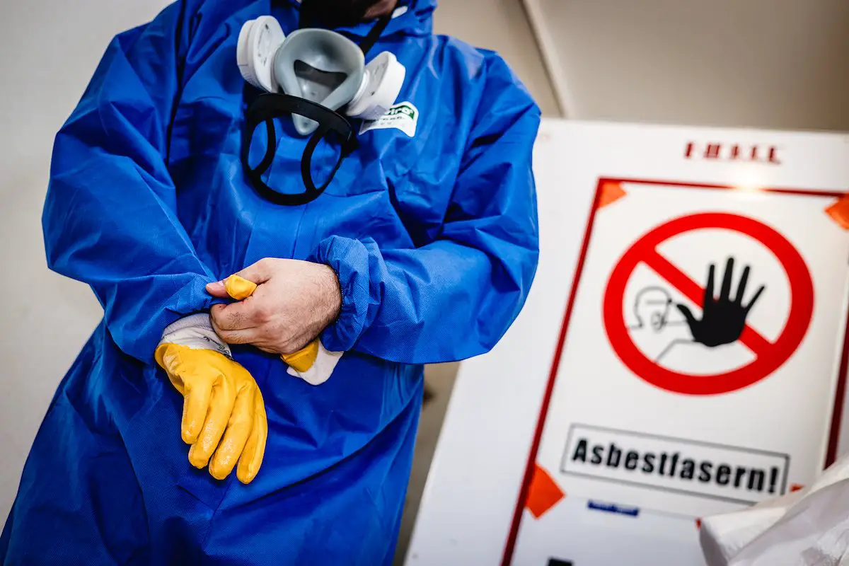 Asbest ist ein bekanntes Krebsrisiko. Gefährlich wird es besonders bei Sanierungen, wenn Asbestfasern freigesetzt werden. Pfohl betont, dass vollständiger Schutz bei Asbest-Sanierungen essenziell ist, einschließlich Atemschutzmasken, Overalls, Schutzbrillen und Handschuhen.