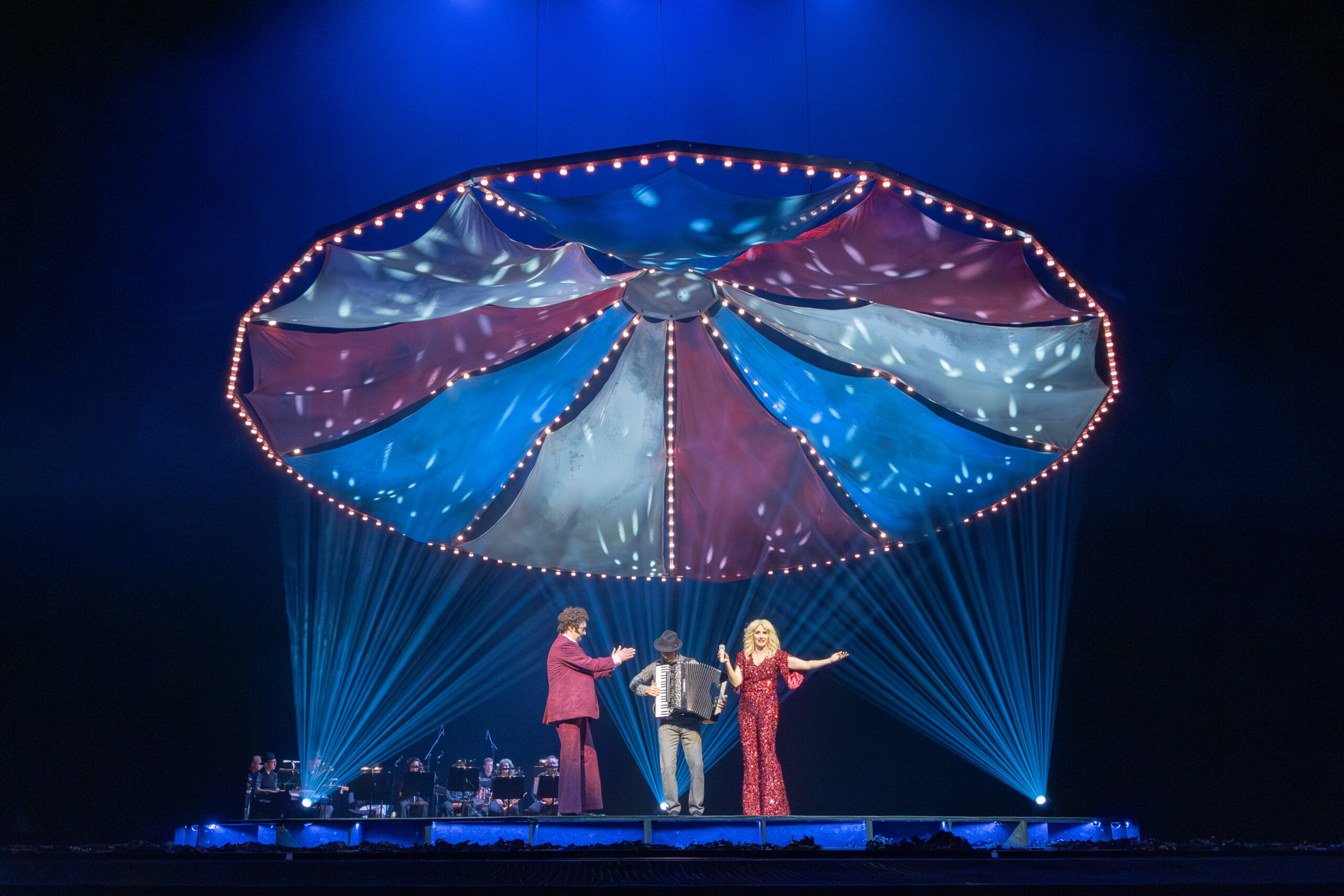 Das alles spielt sich in einem Bühnenbild ab, das Timo Dentler entworfen hat: ein Zirkuszelt als theatrale Arche, flirrend zwischen Volksfest und Endzeitvision. Bunt, aber nie beliebig. Die Kostüme von Okarina Peter greifen diese Ambivalenz auf – schrill, verspielt, mitunter bewusst überzeichnet. Es ist diese bewusste Überladung, die dem Stück seine visuelle Kraft verleiht. Eine Art Balkan-Pop-Oper mit Tiefgang, getragen von der Musik – einer wilden Mischung aus Oper, Brass, Pop und Lyrik, genial dirigiert von Daniel Inbal.