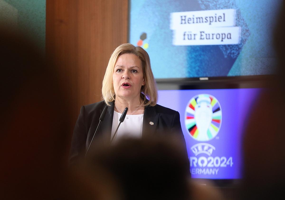 Kurz vor der Fußball-Europameisterschaft in Deutschland äußert sich die Bundesinnenministerin Nancy Faeser (SPD) besorgt über mögliche Gefahren während des Turniers. Neben islamistischen Anschlägen könnten auch gewaltbereite Hooligans und Cyber-Attacken eine Bedrohung darstellen, so die Ministerin.