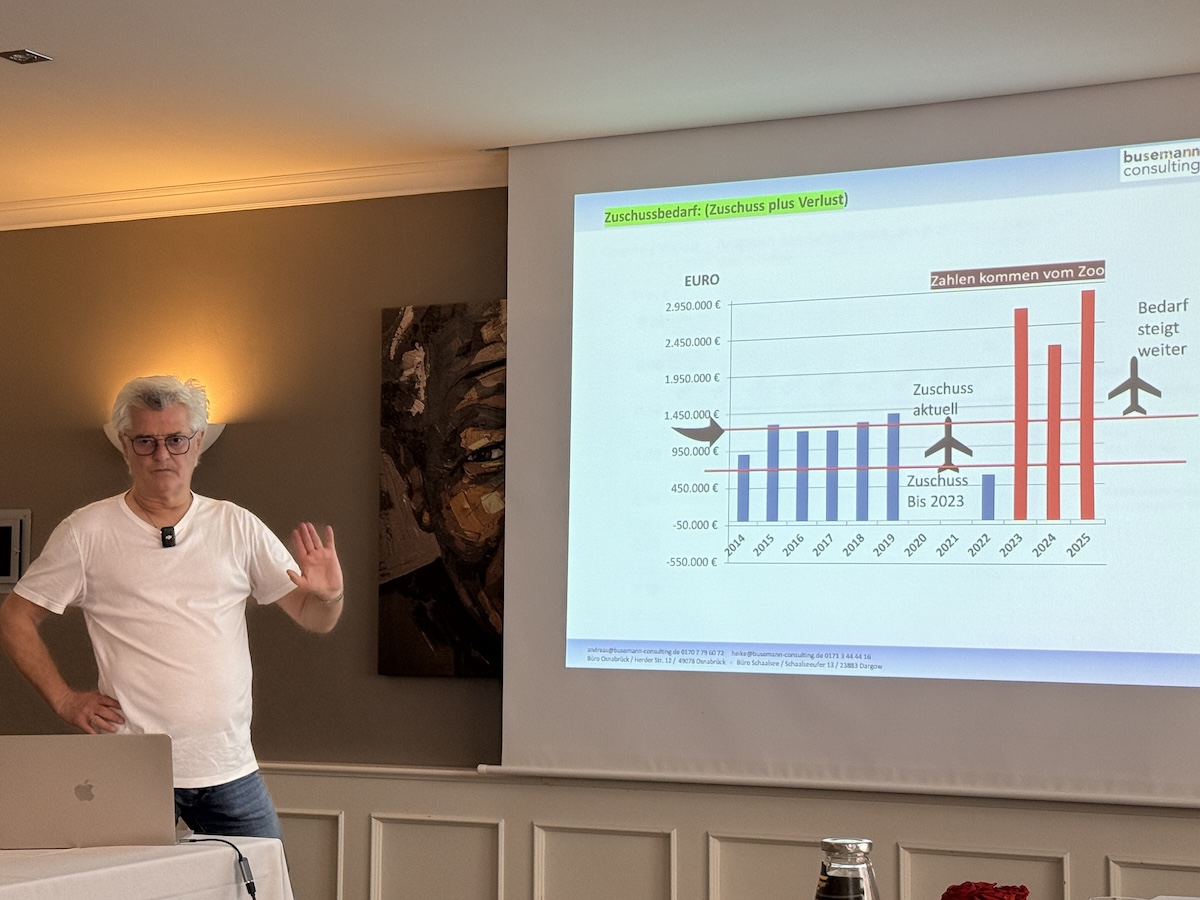 Aber zurück zum Zoo. Wie nicht anders zu erwarten und hier schon kurz erwähnt, sieht Busemann den Zoo in der Krise. Dass dem Zoo „Risiken in Millionenhöhe“ drohen, hatte noch unter der Ägide von Busemann der seinerzeitige Schatzmeister der Zoogesellschaft, Michael Wendt, anlässlich seines Ausscheidens aus dem Aufsichtsrat mehr als deutlich ausgesprochen – eigentlich also gar keine Neuheit.