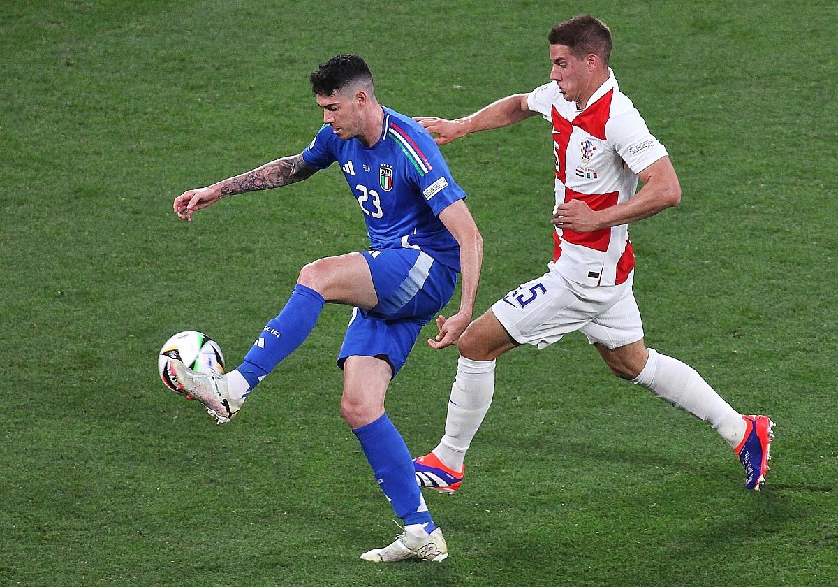 Italien hat sich in der Fußball-EM am dritten Spieltag der Gruppe B dank eines späten Tores von Mattia Zaccagni ein 1:1-Unentschieden gegen Kroatien gesichert und ist damit ins Achtelfinale aufgestiegen. In der parallel ausgetragenen Partie gewann Spanien 1:0 gegen Albanien, wodurch sich die Abschlusstabelle der Gruppe B mit Spanien auf dem ersten Platz und Italien auf dem zweiten bildet.