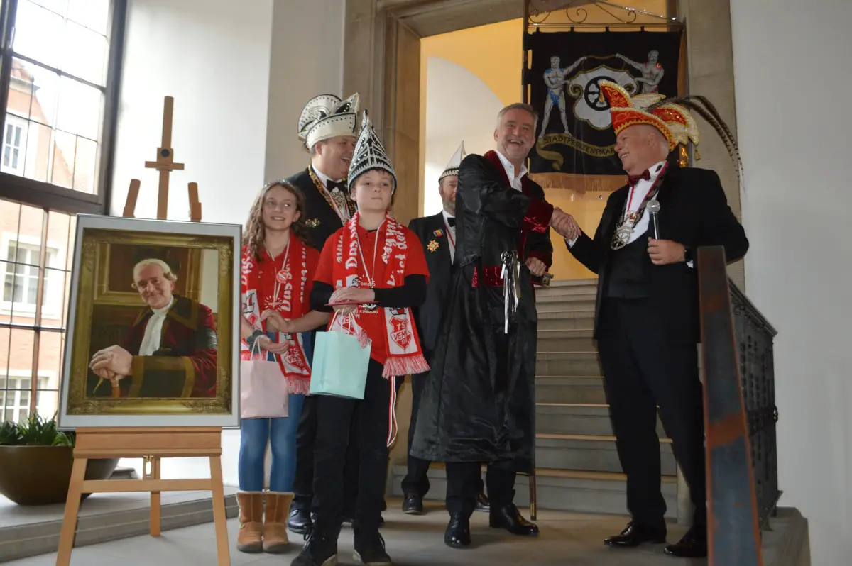 362 Tage im Jahr befindet sich der symbolische Stadtschlüssel im Safe in der Kleinen Ratskammer des Rathauses. Am Ossensamstag hat Oberbürgermeister Wolfgang Griesert ihn jedoch den Karnevalisten ausgehändigt. Drei Tage später brachten die Jecken des Bürgerausschusses Osnabrücker Karneval (BOK) ihn traditionsgemäß zurück. Oberbürgermeister Wolfgang Griesert, der Präsident des BOK René Herring, Stadtprinz Martin I. (Ellenberger) und das Kinderstadtprinzenpaar Mina I. (Gerlach) und Noah I. (Wanner) waren bei der Schlüsselübergabe dabei.