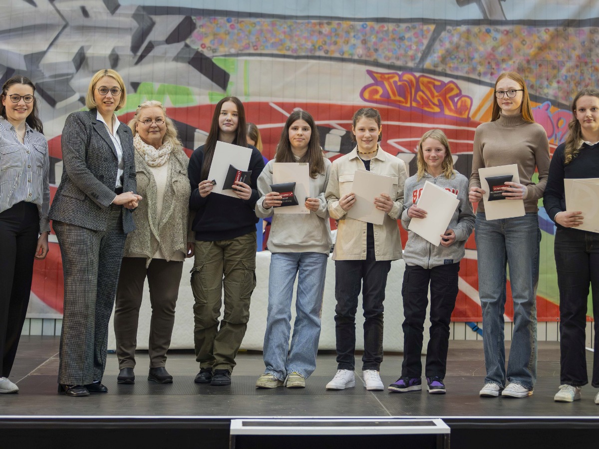 „Man muss nicht nur wollen, man muss auch können“, sagte Oberbürgermeisterin Katharina Pötter. „Eine Auszeichnung der Stadt ist absolut verdient – allein schon, weil wir sehr stolz auch euch sind.“ Genauso wie Gerd Pfannkuch als stellvertretender Vorsitzender des Stadtsportbundes in seiner Rede, ließ auch Katharina Pötter die jungen Sportlerinnen und Sportler wissen, dass sie wichtige Vorbilder sind. „Macht bitte weiter so!“, zumal die Schulung von Durchhaltevermögen, Frustrationstoleranz und Selbstvertrauen im Sport auch ein großer Gewinn für das eigene, berufliche und soziale Leben sein kann.