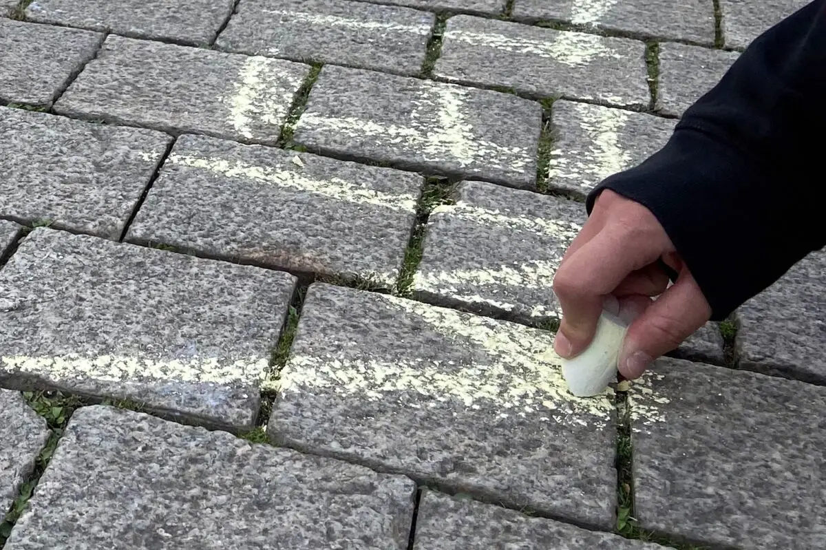 Die Kreide-Aktion am Nikolaiort in Osnabrück soll Bewusstsein schaffen. / Foto: Exil e. V.