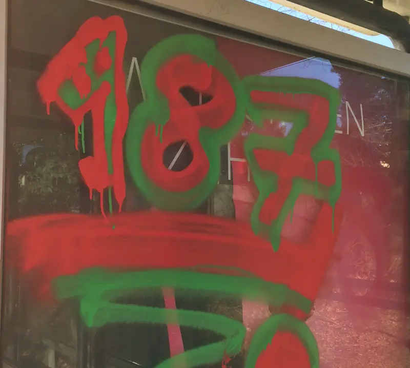 Die Graffiti-Sprayer hinterliessen ein auffälliges „W“ auf den Glaswänden der Haltestelle. Von der Pressestelle der Osnabrücker Polizei erhielten wir zwischenzeitlich die Information, dass dieses Symbol den „Grafitti-Sachbearbeitern“ der Polizei nicht bekannt ist. Einen politischen Hintergrund vermutet Polizeisprecher Georg Linke nicht.
