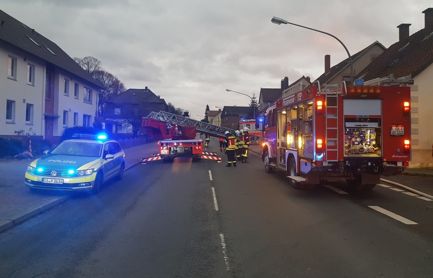 Die Freiwillige Feuerwehr Melle rückte mit der Alarmeinheit der Ortsfeuerwehren Melle-Mitte, Altenmelle und Bakum an. Ein Trupp ging unter Atemschutz mit einem Strahlrohr zur Brandbekämpfung vor, während zwei weitere Trupps das Gebäude auf weitere Bewohner absuchten. Glücklicherweise hatten jedoch alle Anwesenden rechtzeitig das Haus verlassen können.