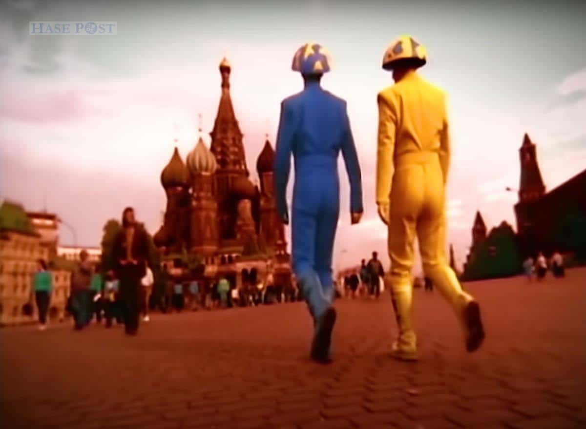 Gestern habe ich zufällig den Song „Go West“ gehört. Nicht die vor allem im Video durchaus kuriose Originalversion der Village People von 1979, sondern die Neuauflage der Pet Shop Boys. Die stammt aus dem Jahr 1993, und nimmt vor allem durch die geschickt eingebundene sowjetische Nationalhymne und einen Kosaken-Chor (dessen Sänger tatsächlich allerdings aus Wales kamen) deutlichen Bezug zu dem sich zum Zeitpunkt der Veröffentlichung vollziehenden Wandel in der ehemaligen Sowjetunion – verstärkt wiederum durch einen zeitgeistig bunten Videoclip (siehe Titelbild zu diesem Kommentar).
