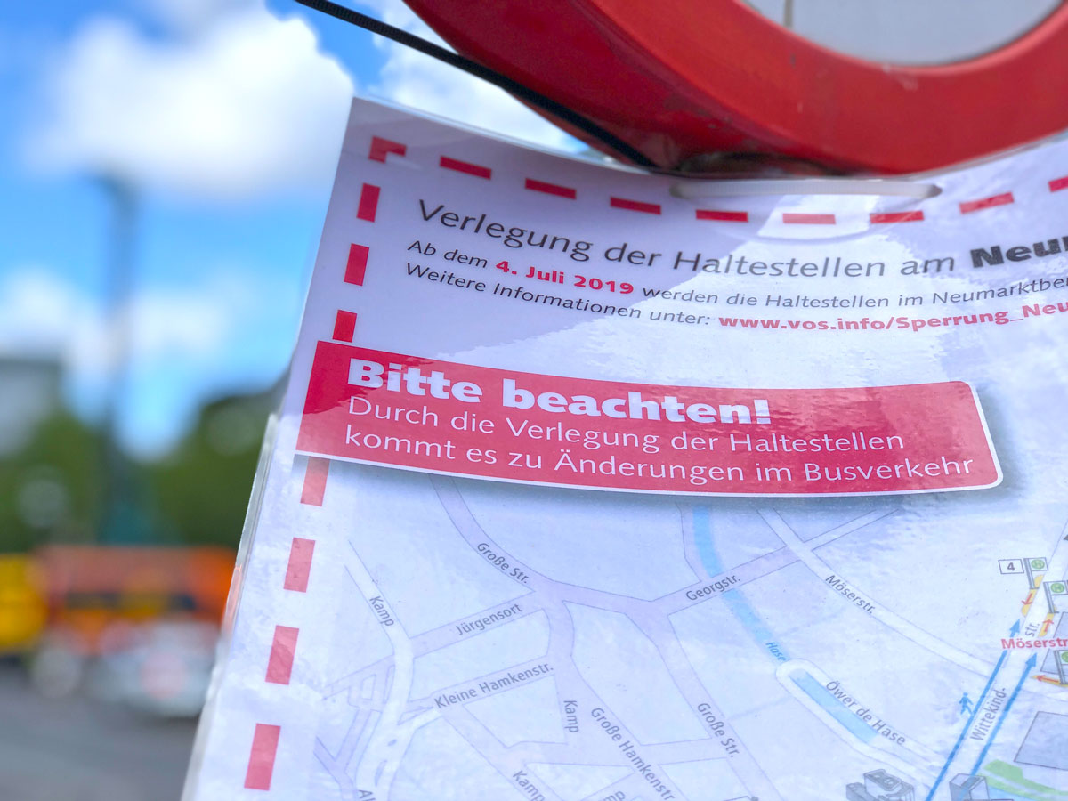 Nochmals: Dass den ganzen Sommer über der Neumarkt von den Bussen der Stadtwerke nicht angefahren wurde, liegt an einer Baustelle, die niemals eingerichtet wurde.