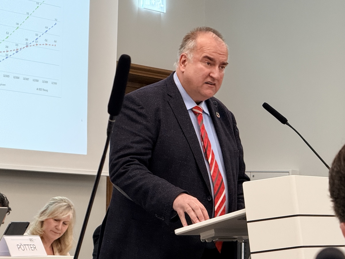 Die Realität sehe jedoch düster aus. Osnabrück stehe vor massiv steigenden Defiziten. „Unser Schuldenstand wird deshalb besonders bei unseren konsumtiven Schulden wieder deutlich ansteigen. Dürfen wir das zulassen? Nein, natürlich nicht!“ Fillep rechnet damit, dass die Stadt bis Ende 2027 zusätzliche Kassenkredite von 202 Millionen Euro aufnehmen muss. Allein die Zinslast wächst von 10,1 Millionen Euro im Jahr 2024 auf 22,6 Millionen Euro im Jahr 2027. „Da gibt es nichts zu beschönigen.“