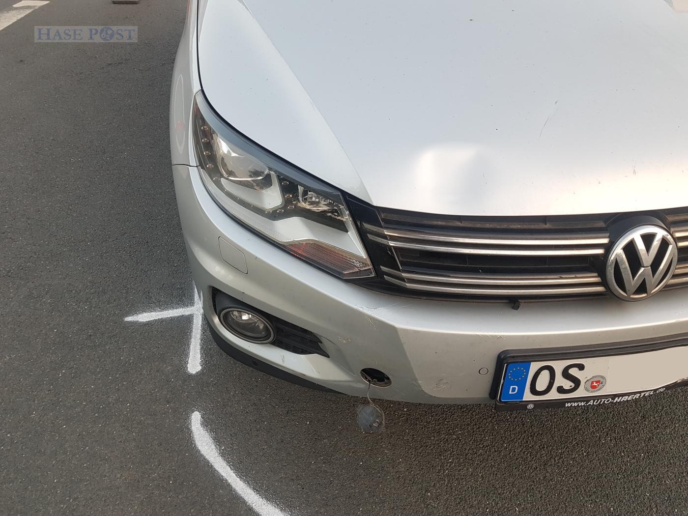 Der Radfahrer prallte gegen die Frontscheibe des VW Tiguan und wurde auf die Fahrbahn geschleudert. Die Besatzung eines Rettungswagens und ein Notarzt kümmerten sich um den Mann vor Ort und brachten ihn in ein Krankenhaus.