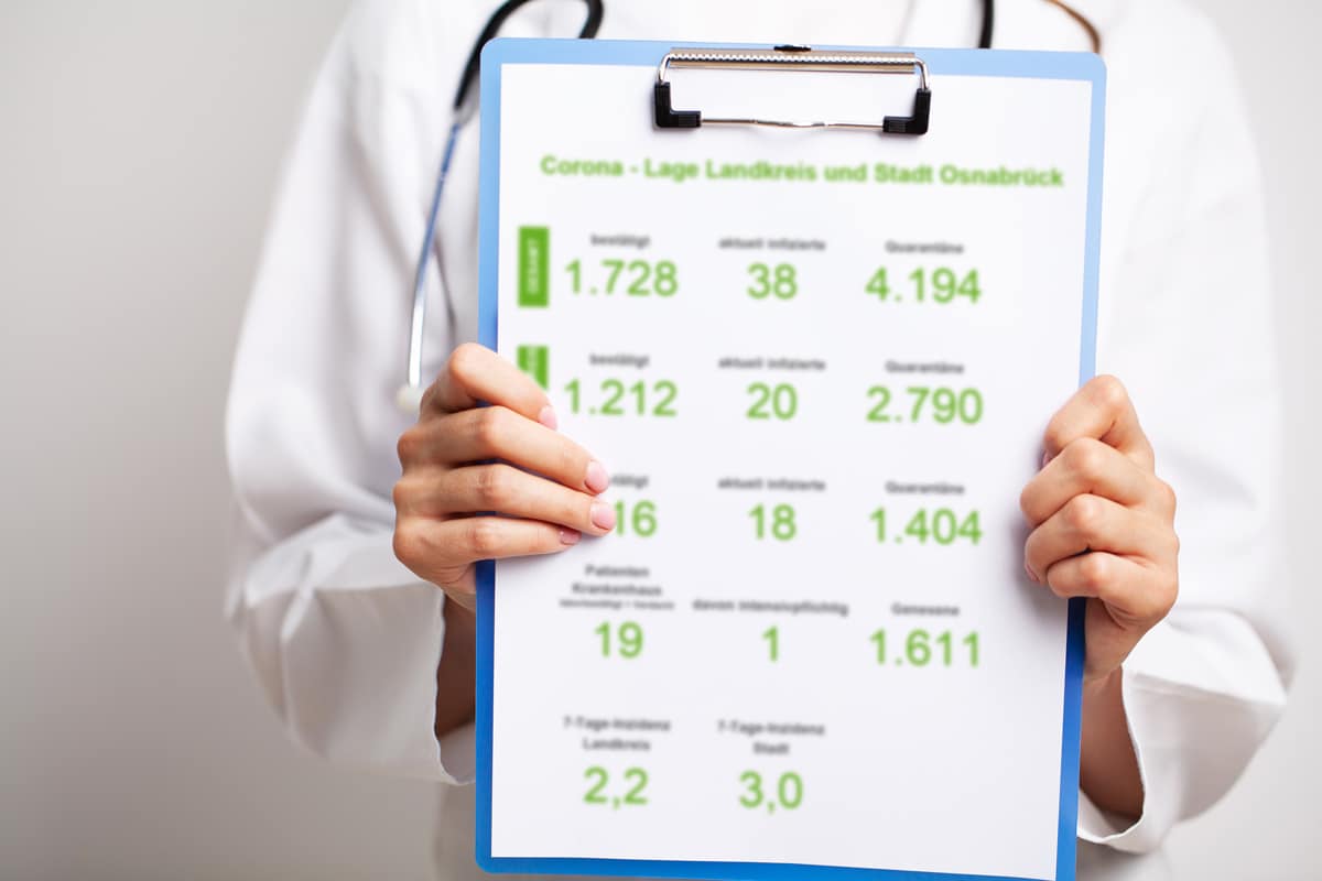 Währenddessen veränderten sich die für die Stadt Osnabrück gemeldeten Zahlen von Samstagmorgen auf Sonntagmorgen nicht. Im Stadtgebiet sind aktuell weiterhin 18 Menschen als „infiziert“ gemeldet, 43 weitere Osnabrücker müssen sich nach einem möglichen Kontakt vorerst in Quarantäne halten.