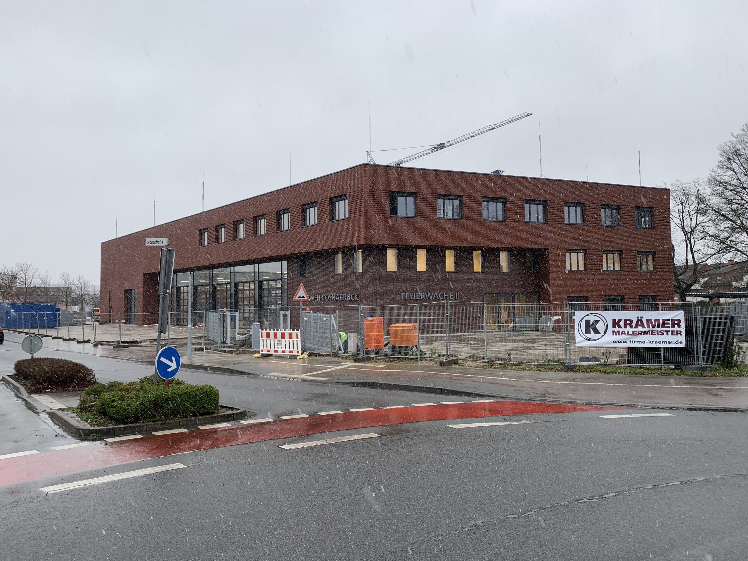 Ursprünglich war geplant, die „Feuerwache 2“ Anfang 2021 in Betrieb zu nehmen: Derzeit laufen die Arbeiten – auch im Schneefall – jedoch noch.