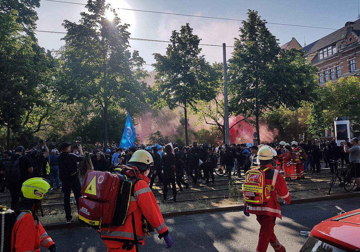 Am Wochenende nach der Urteilsverkündung im Prozess um Lina E. und weitere Angeklagte kam es zu teils heftigen Auseinandersetzungen zwischen Demonstranten und der Polizei. Die Stadt hatte im Vorfeld alle Demonstrationen im Zusammenhang mit Lina E. verboten und war hierfür scharf kritisiert worden. Bei einem angemeldeten Protestmarsch, welcher ebenfalls nicht erlaubt wurde, kam es nach der Auftaktkundgebung zu Angriffen auf Beamte. Die Polizei hatte daraufhin circa 1.000 Personen eingekesselt und zum Teil über elf Stunden festgehalten – angeblich zum Zwecke der Identitätsfeststellung.