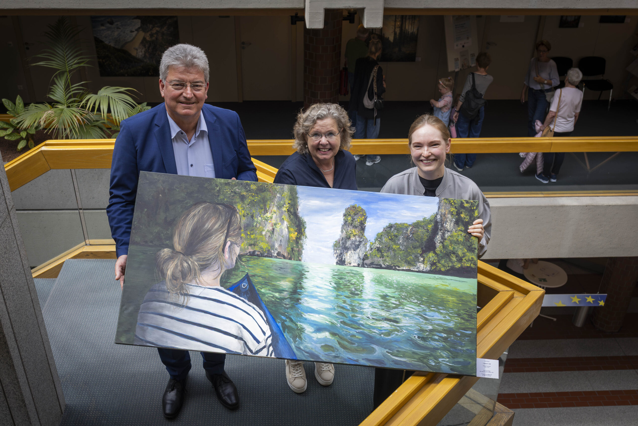 Bei der Ausstellungseröffnung würdigte Kreisrat Matthias Selle die besondere Bildsprache: „Lena Brüner gelingt es auf eindrucksvolle Weise, eigene Naturerfahrungen mit Emotion und Atmosphäre zu verbinden. Ihre Werke laden zum Innehalten ein und spiegeln die Vielfalt und Schönheit unserer Erde wider.“