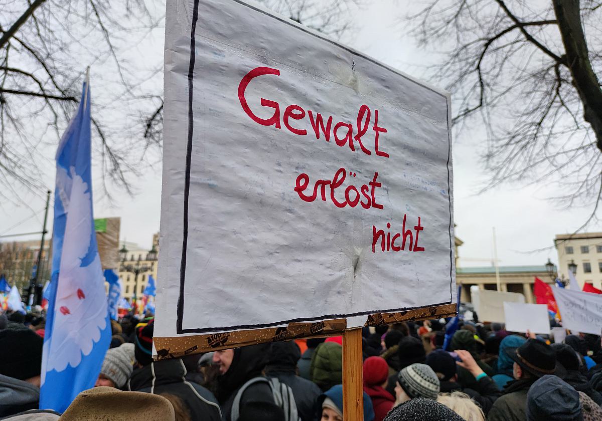 Foto: Demo gegen Waffenlieferungen am 25.02.2023, über dts Nachrichtenagentur