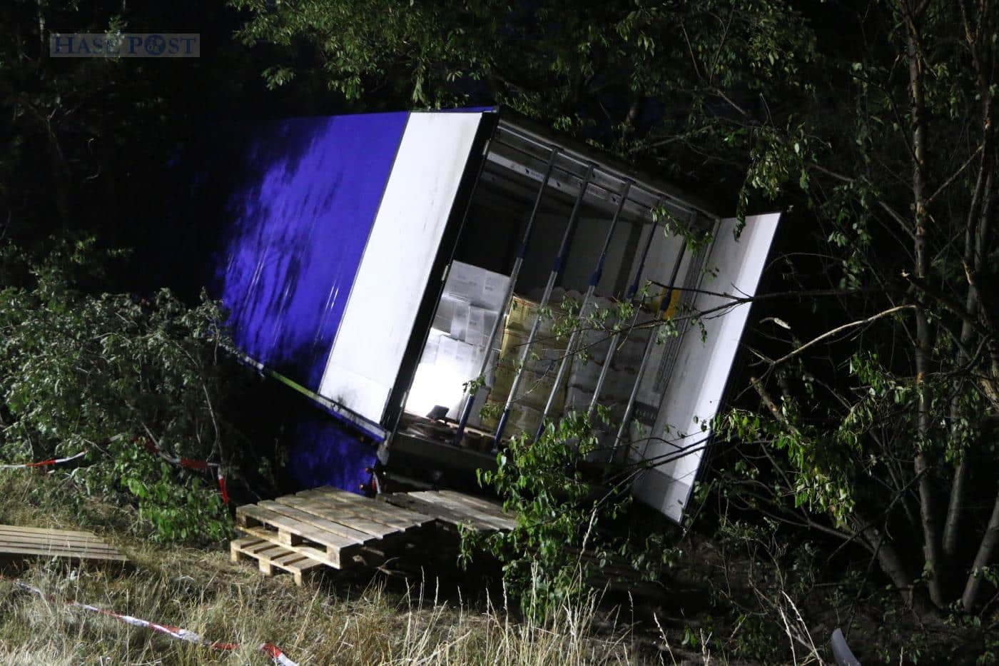 In der Nacht zu Mittwoch (20. Juli 2022) war es gleich zu zwei LKW-Unfällen auf der Autobahn A1 gekommen. Nach einem Zusammenstoß zwischen zwei Lastwagen in Fahrtrichtung Münster, bei dem eine Person starb, war wenig später ein Sattelzug in Fahrtrichtung Bremen alleinbeteiligt von der Fahrbahn abgekommen. Der Fahrer war glücklicherweise nur leicht verletzt worden.