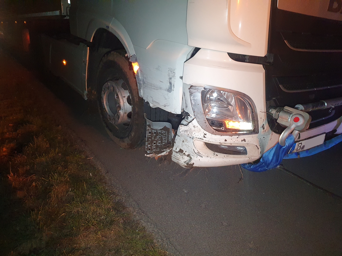 Weil an der Böschung erst kürzlich Grünschnitt erfolgt war, war der LKW direkt in die Erde gefahren, ohne mit Büschen oder Strauchwerk zu kollidieren. Schwere Schäden blieben deshalb augenscheinlich aus, der Sattelzug konnte mit eigenem Antrieb in eine Werkstatt gefahren werden.
