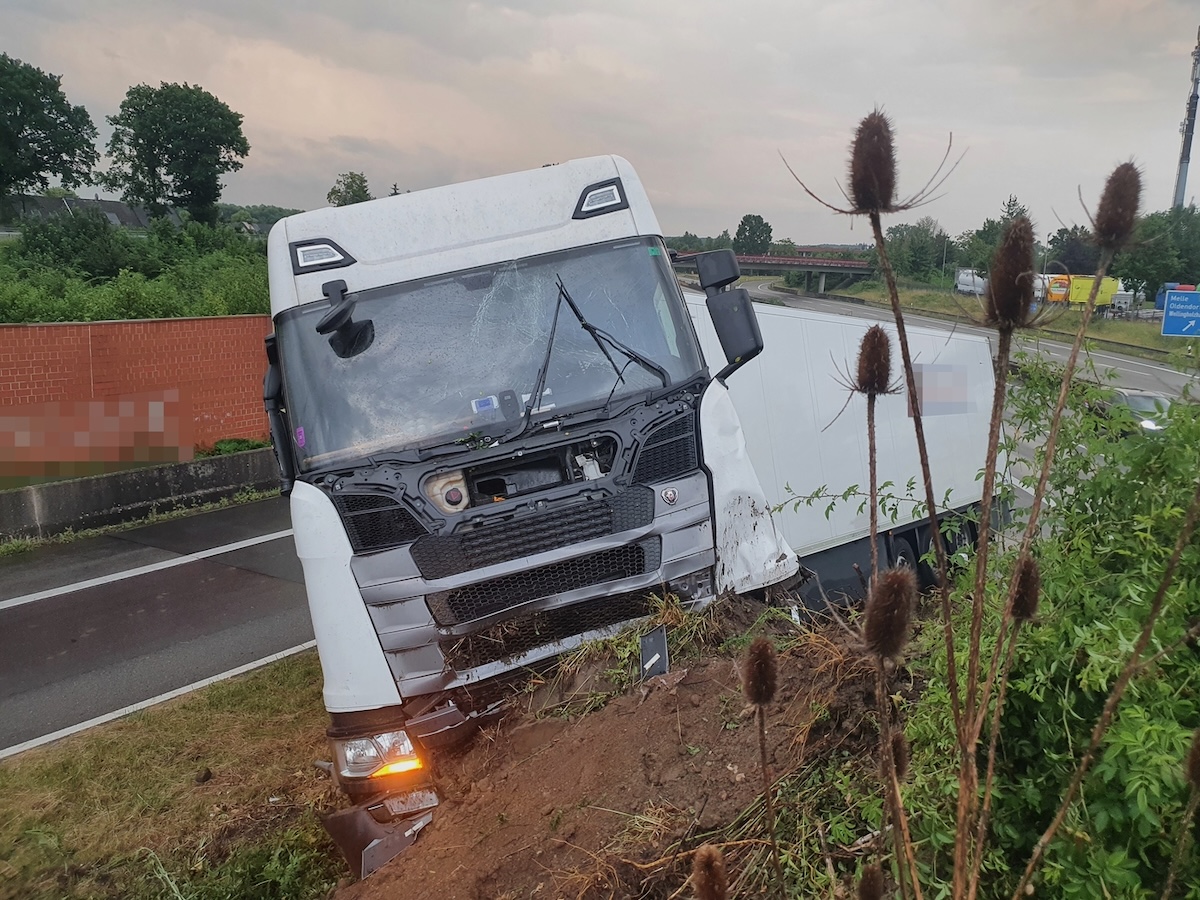 Gegen 20:50 Uhr war ein 51-jähriger Mann mit seinem unbeladenen Sattelzug in Fahrtrichtung Osnabrück unterwegs, als er im Bereich der Anschlussstelle Melle-West bei Starkregen die Kontrolle über das Fahrzeug verlor. Nach ersten Erkenntnissen wollte der Fahrer auf der Autobahn bleiben, doch der Sattelzug geriet ins Schlingern.