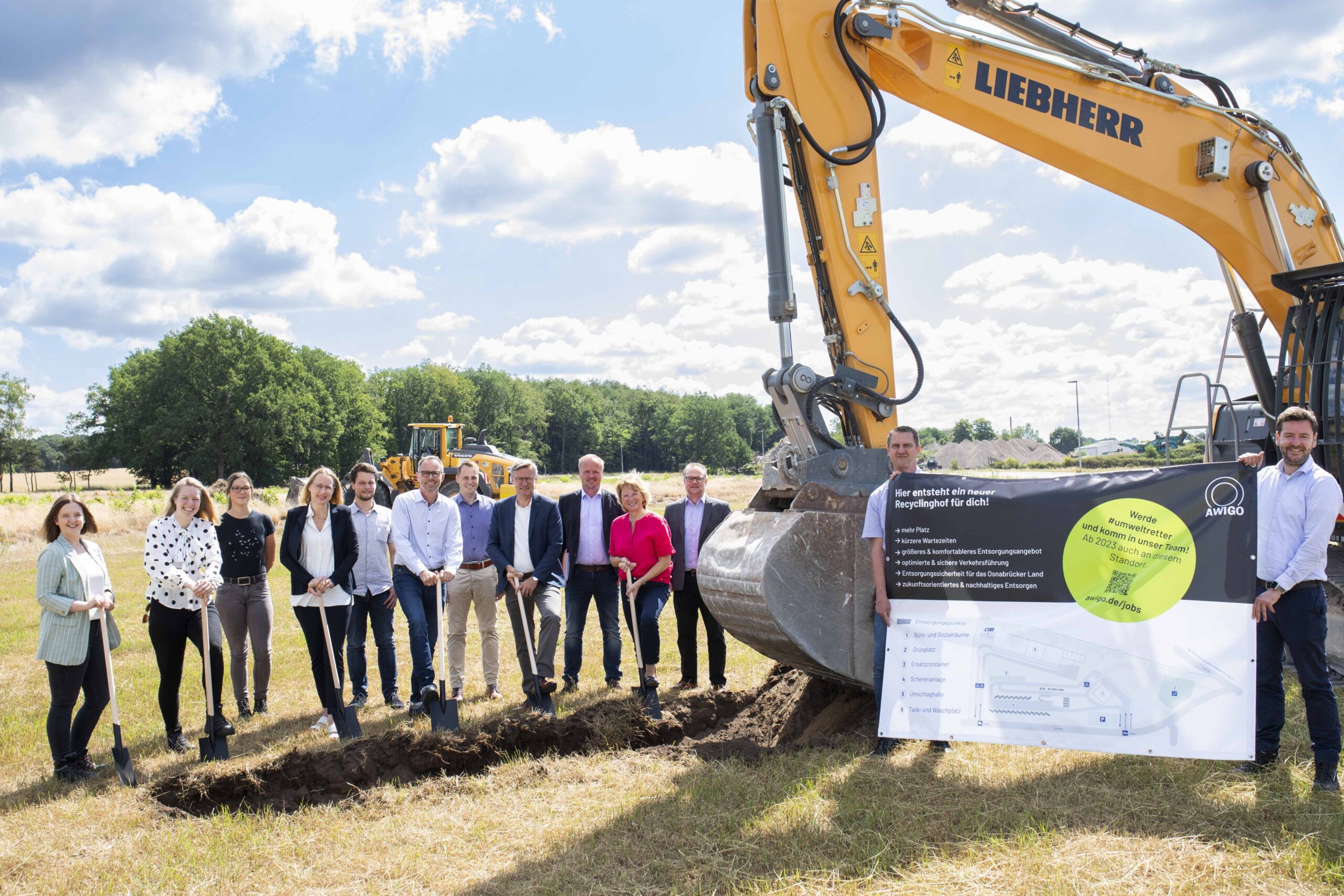 Mehr Platz, kürzere Wartezeiten, größeres, nachhaltigeres und komfortableres Entsorgungsangebot, optimierte und sichere Verkehrsführung sowie Entsorgungssicherheit für das Osnabrücker Land – all diese Ziele will die AWIGO mit ihrem neuen Standort im Gewerbegebiet Schwarzer See in Wallenhorst-Hollage erreichen. Jetzt haben die Bauarbeiten begonnen – der erste Spatenstich ist erfolgt.
