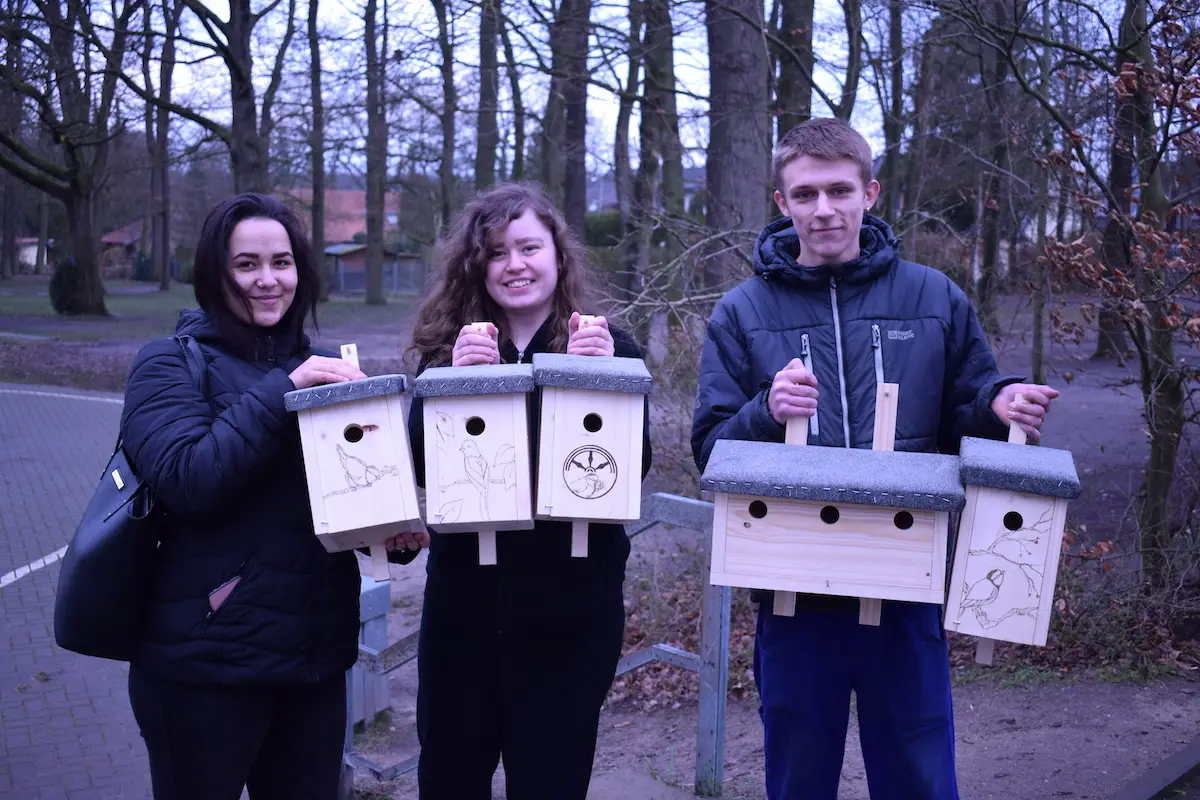 Das Zentrum für Jugendberufshilfe unterstützt jungen Menschen dabei, sich für den Arbeits- und Ausbildungsmarkt zu qualifizieren. Dazu unterhält es diverse Werkstätten in denen unter anderem Parkbänke, Spielgeräte und jetzt auch die Nistkästen gefertigt werden. Insgesamt bieten die in der Grundschule Widukindland aufgehängten Kästen Platz für zehn Nester, außerdem wurden sie von Aygül Hatunoğlu in liebevoller Handarbeit verziert. Boris Hündorf von der Jugendberufshilfe hält viel von dem Projekt: „Wir können einen Beitrag zum Kampf gegen den Eichenprozessionsspinner leisten und gleichzeitig jungen Menschen den Weg auf den Arbeitsmarkt ebnen. Wir sind schon mit weiteren Schulen und Kindergärten in Kontakt und planen noch viel mehr Kästen aufzuhängen. Die Zeit drängt, da die Brutzeit bald beginnt.“