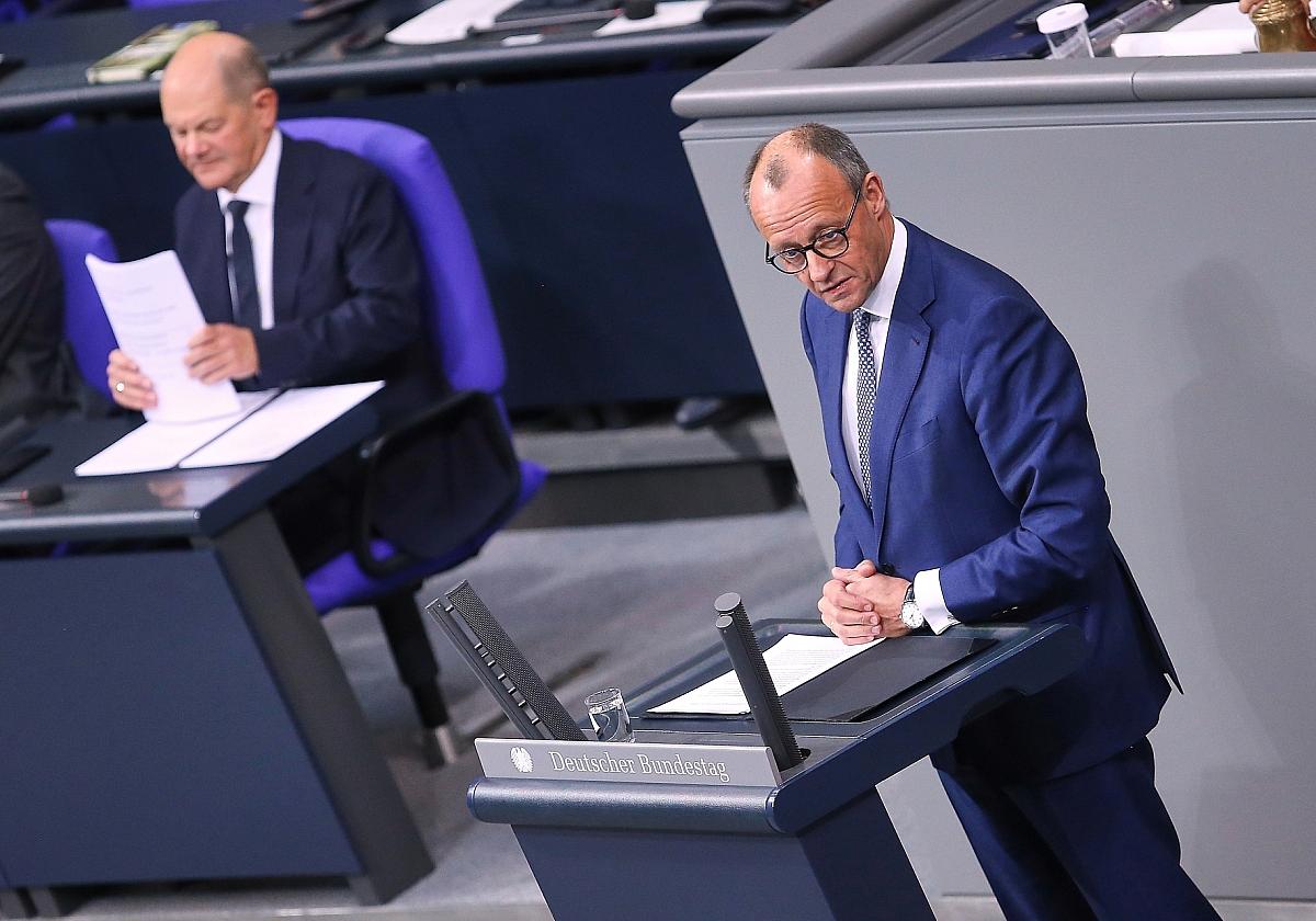 Friedrich Merz (CDU) äußerte am Mittwoch nach einer Regierungserklärung des Kanzlers seine Bedenken gegenüber Olaf Scholz (SPD). „Sie leben offensichtlich in ihrem eigenen Kosmos“, sagte Merz und betonte, dass Scholz seiner Meinung nach die aktuelle Lage im Land nicht verstanden habe: „Sie haben nicht verstanden, was draußen im Lande im Augenblick geschieht.“ Die Regierungserklärung sei „ein letzter Beweis für die Folgerichtigkeit des Scheiterns“ der Ampel-Regierung gewesen.