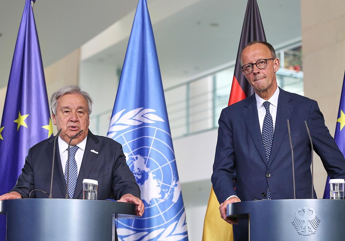 Bundeskanzler Friedrich Merz (CDU) hat beim Besuch von UN-Generalsekretär Antonio Guterres in Berlin auch künftig deutsche Unterstützung für die Vereinten Nationen zugesagt. „Wir wissen: Kein Partner, auch Deutschland nicht, kann allein den Ausfall von Beiträgen kompensieren. Aber Deutschland wird, und das möchte ich gerne zusagen, einer der wichtigsten Beitragszahler für die Vereinten Nationen bleiben“, sagte Merz am Mittwoch.