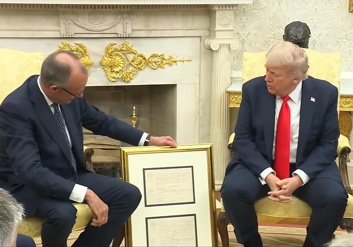Die Stimmung war von Anfang an vergleichsweise harmonisch, nachdem Merz dem US-Präsidenten gleich zu Beginn die Geburtsurkunde von dessen deutschem Großvater Friedrich Trump aus dem Jahr 1869 als Geschenk mitgebracht hatte. Trump lobte Merz für dessen gute Englischkenntnisse, dieser bedankte sich für die Ehre, im offiziellen Gästehaus übernachten zu dürfen. Wie ihm im Vorfeld geraten worden war, geizte der Bundeskanzler dabei nicht mit dem Wort „Great“. Merz sei ein guter Vertreter für Deutschland, aber ein bisschen „schwierig“, sagte der US-Präsident sichtlich im Scherz.