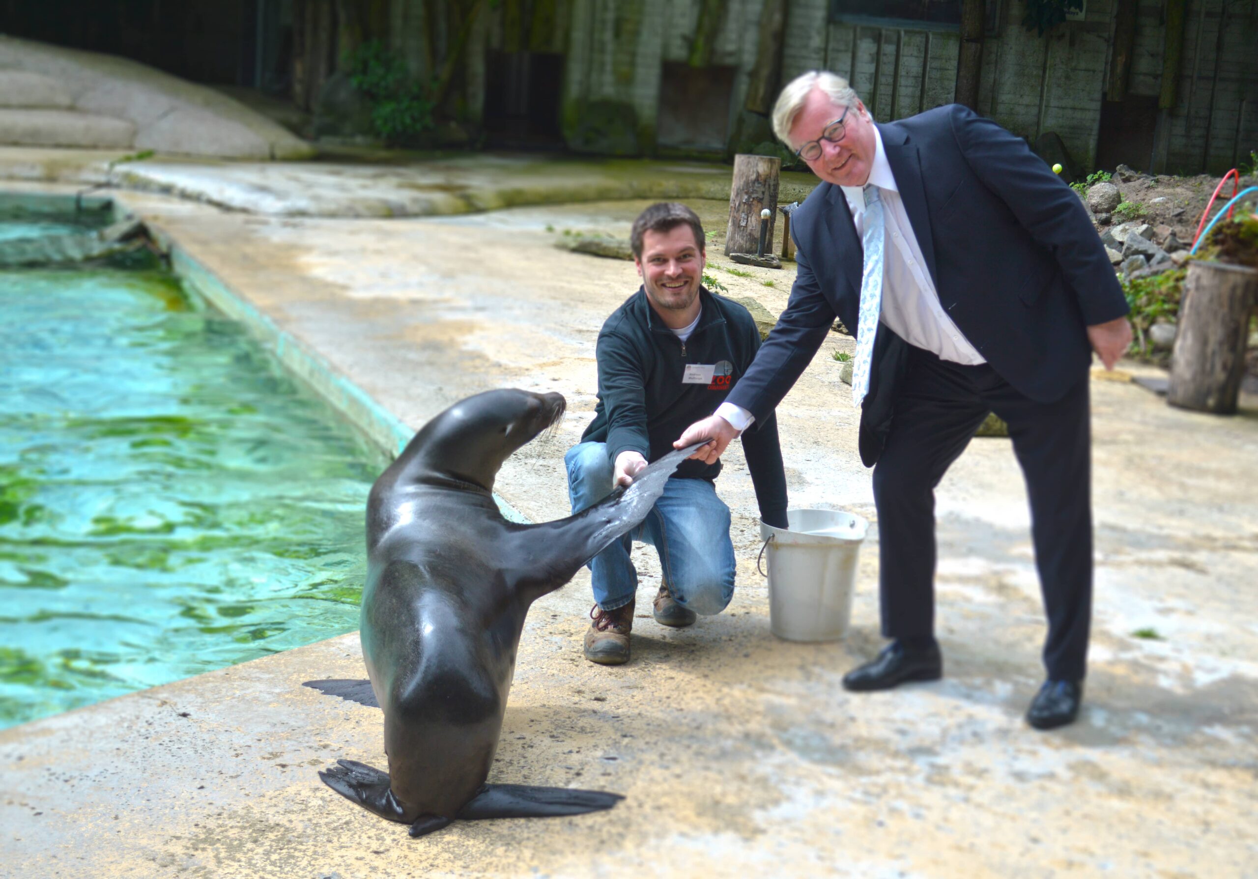 Die „Wasserwelt“ wird die neue Heimat für die Seelöwen, Seehunde und Humboldt-Pinguine. „Bei unseren regelmäßigen Besucherbefragungen werden mit 25 Prozent die Seehund- und Seelöwenanlage mit am häufigsten als überarbeitungsnotwendig bezeichnet. Das deckt sich komplett mit unserer Meinung“, so Zoopräsident Dr. Fritz Brickwedde. Auch aus infrastruktureller Sicht ist der Umbau notwendig, denn einige Becken verlieren Wasser und fehlende Filteranlagen erfordern wöchentliche Reinigungsarbeiten, sodass die Becken währenddessen nicht nutzbar sind. Die rund 4.000 Quadratmeter große neue Tierwelt „Wasserwelten“ soll in Zukunft den derzeit drei Kalifornischen Seelöwen, 21 Humboldt-Pinguinen und drei Seehunden ein neues Zuhause bieten und den großen Bereich zwischen Zoogaststätte und Elefantenanlage umfassen. „Die Gestaltung der Wasserwelten soll an die Nordseeküste erinnern. Wir werden auch Kooperationen mit touristischen Destinationen an der Nordseeküste umsetzen und hierbei erneut ganz eng mit dem Hochschulbereich kooperieren, um das Gesamtbild abzurunden und neue Zielgruppen zu erreichen“, so Busemann. Ebenfalls eröffnen sich mit dem Neubau der Tierwelt neue Möglichkeiten im Bereich Bildung, der zu den zentralen Aufgaben von Zoos gehört. Minister Althusmann lobte den ganzheitlichen Ansatz der Planung: „Der Zoo denkt über seine Grenzen hinaus und bezieht sowohl die Wirtschaft vor Ort als auch den Tourismus und den Hochschulbereich in weiter entfernteren Regionen ein. So profitieren viele von der Weiterentwicklung. Das hat Modellcharakter.“