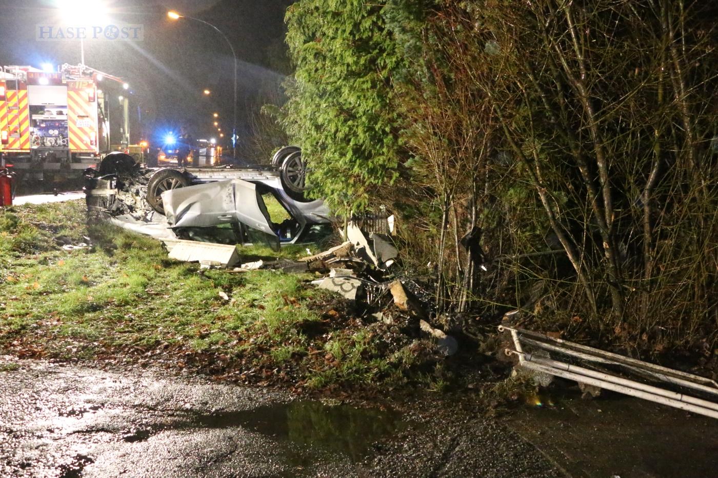 Minderjährige flüchten mit PKW in Hasbergen vor Polizei, Auto kippt aufs Dach und fängt Feuer
