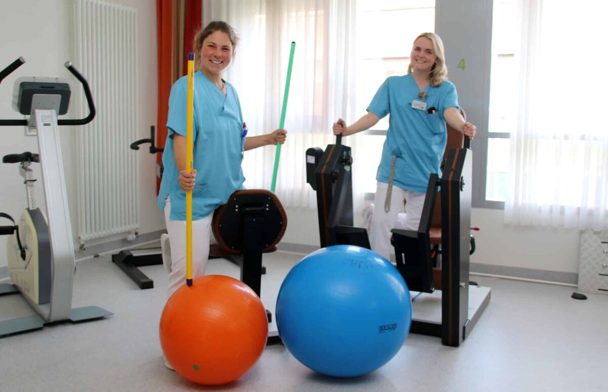 Neben Singen als Sprech-/Sprachtraining haben sich zum Verbessern/Erhalten der Bewegungsfähigkeiten bei Parkinson gerade Tanzen und Tischtennis und andere sportliche Übungen als sinnvolle therapeutische Aktivitäten erweisen. Deswegen ist die 19-Betten-Station nicht nur gleich mit zwei Trainingsräumen mit Sport-/Fitnessgeräten ausgestattet, in denen Bewegungsübungen gemacht werden bzw. die für die Mobilisierung genutzt werden – sondern es wird jeden Vormittag Ping-Pong gespielt und es steht auch „Neurotango“ auf dem Therapieplan. Regelmäßig trifft sich daneben eine Gruppe von ehemaligen Patientinnen und Patienten zum Tischtennis auf der Station. „Bei uns wird aber nicht nur getanzt und Tischtennis gespielt“, schmunzelt Leonie Vennemann, „sondern als Neuestes wird jetzt auch geboxt.“ Dabei müssen aufleuchtende Stellen auf einer Scheibe getroffen werden. „Das ist ein sehr gutes Training für die Koordination und die Bewegungsfähigkeit – und es macht den Erkrankten Spaß“, sagt Altvogt.
