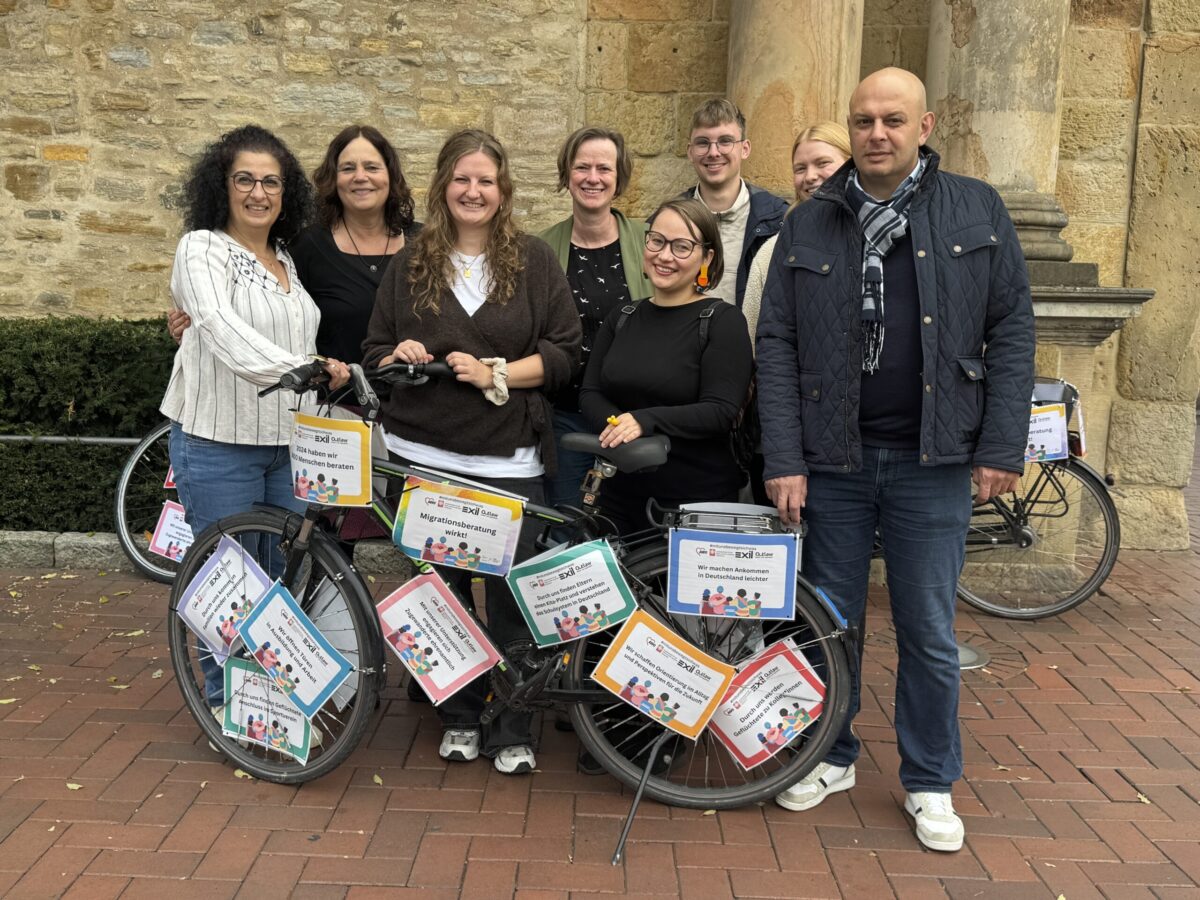 An fünf zentralen Orten in Osnabrück stehen noch bis zum 2. Oktober bunt geschmückte Fahrräder, die mit Plakaten auf die Arbeit der Migrationsberatungsstellen aufmerksam machen. Jedes Jahr findet die Aktionswoche der Migrationsberatung deutschlandweit statt, und macht damit nicht nur Zugewanderte auf verschiedene Anlaufstellen aufmerksam, sondern gibt auch einen vielfältigen Einblick in den Alltag bei der Migrationsarbeit.