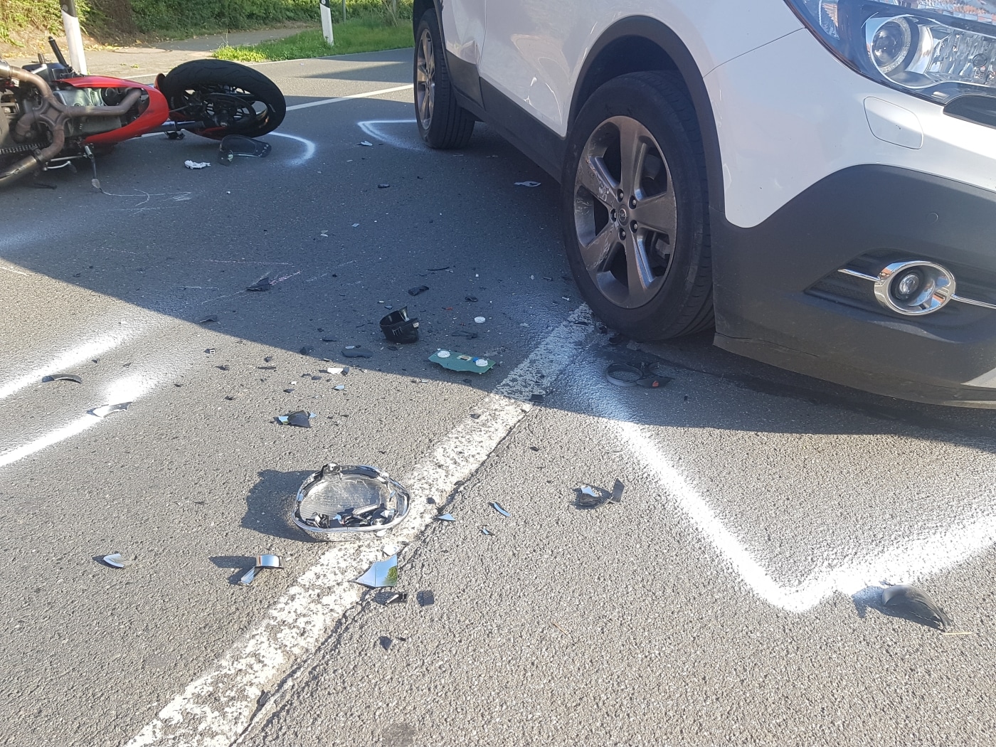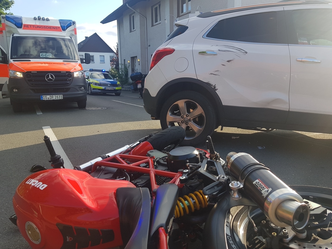 Gegen 17:40 Uhr wurden Rettungsdienst und Polizei zu dem Unfall gerufen. Auf der Oldendorfer Straße waren ein Auto und ein Motorrad kollidiert.
