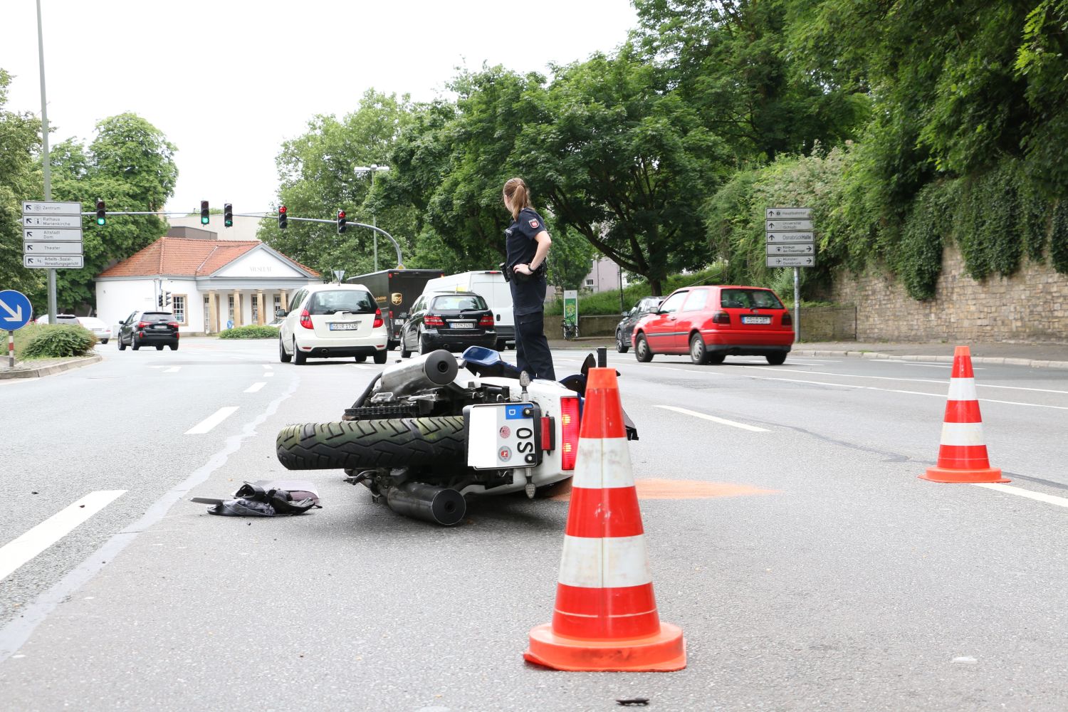 Am Mittag kam es auf dem Osnabrücker Wall zu einem Unfall, bei dem ein Motorradfahrer durch einen Zusammenstoß im Gegenverkehr verletzt wurde.