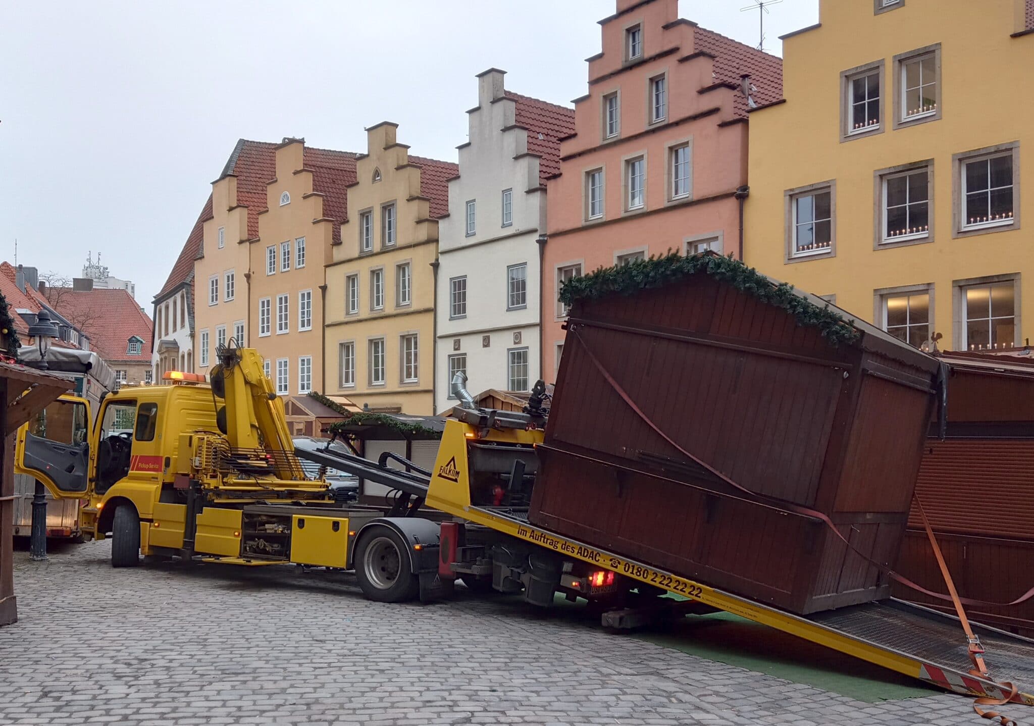 Das wars: Nach drei turbulenten Wochen wird der Osnabrücker Weihnachtsmarkt vorzeitig abgebaut. Zum zweiten Mal fallen Glühwein, Fastfood und Fahrgeschäfte der Pandemie zum Opfer.