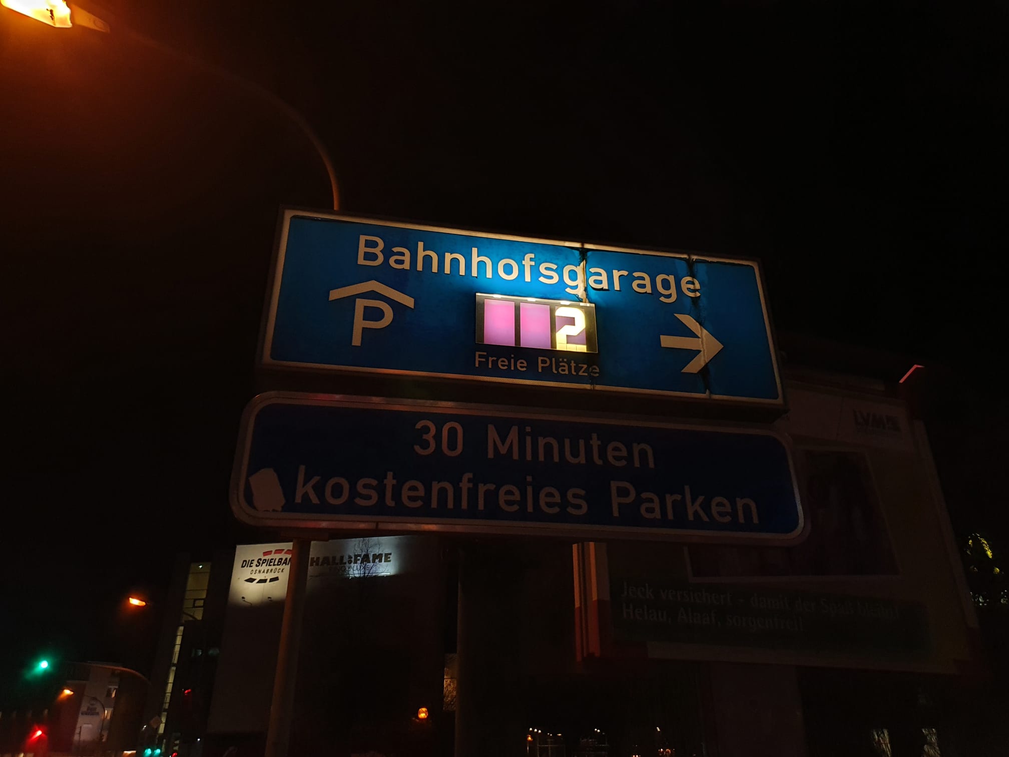 Am Freitagabend, kurz nach 19 Uhr, waren im gesamten Parkhaus der OPG – das auch dem einfachen Umstieg Reisender vom Auto in den Zug dienen soll – nur noch zwei Parkplätze frei, wie unser Foto zeigt.