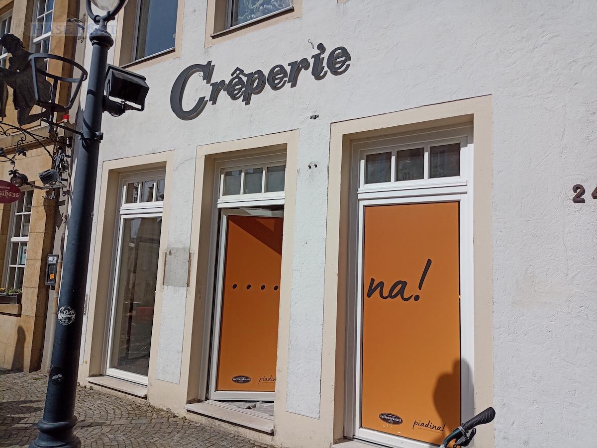 Das ehemalige Crêperie-Gebäude am Markt ist zur Zeit eine Baustelle, doch im Mai soll neues Leben in das alte Bürgerhaus einziehen. Marko Eschelbach, Inhaber der caffewerkstatt in der Lotter Straße, eröffnet das „piadina!“, in dem die gleichnamige italienische Spezialität verkauft werden soll. Piadine sind traditionelle italienische Fladenbrote, die zum Beispiel mit Käse, Schinken oder Salat belegt werden. Eschelbach beschreibt sie als „weniger mächtig als Pizza, saftiger als Flammkuchen, knuspriger als Wrap und schmackhafter als ein Crêpe“.