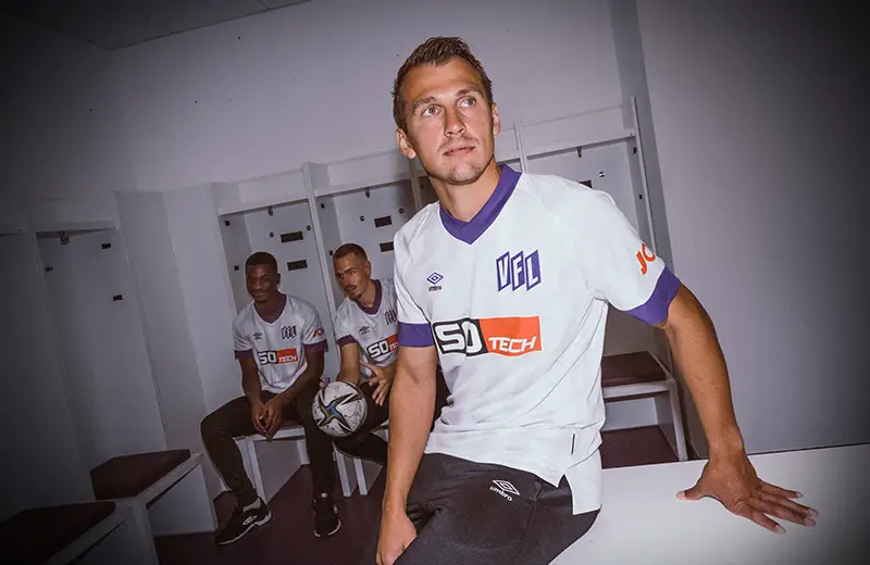Ebenso wie das Heimtrikot ist das Auswärtstrikot in enger Kooperation mit UMBRO individuell für den VfL gestaltet worden. Neben der modischen Passform sticht erneut der stilisierte V-Ausschnitt heraus. Im Nacken tragen die Spieler mit Stolz das Osnabrücker Rad, das sich in den Wappen der Stadt und des Landkreises Osnabrück wiederfindet.